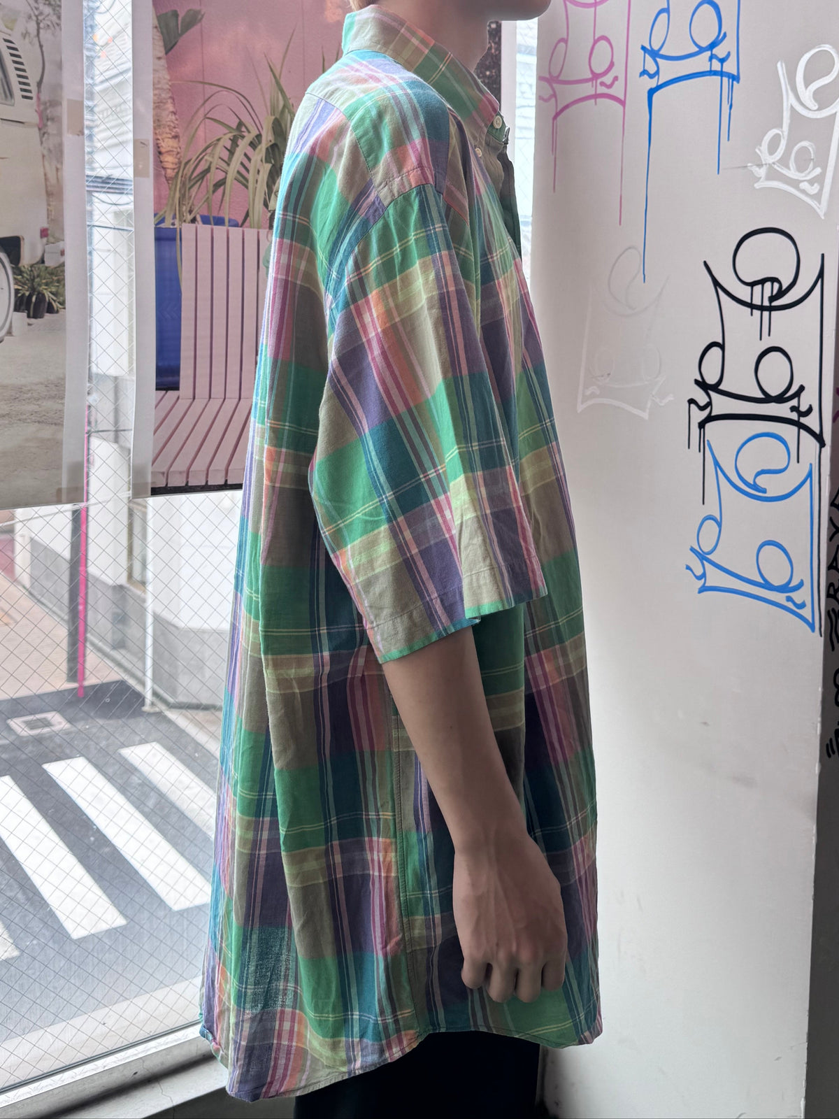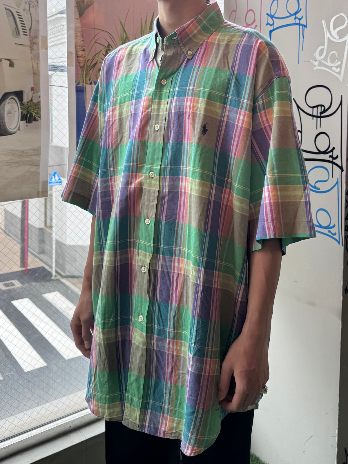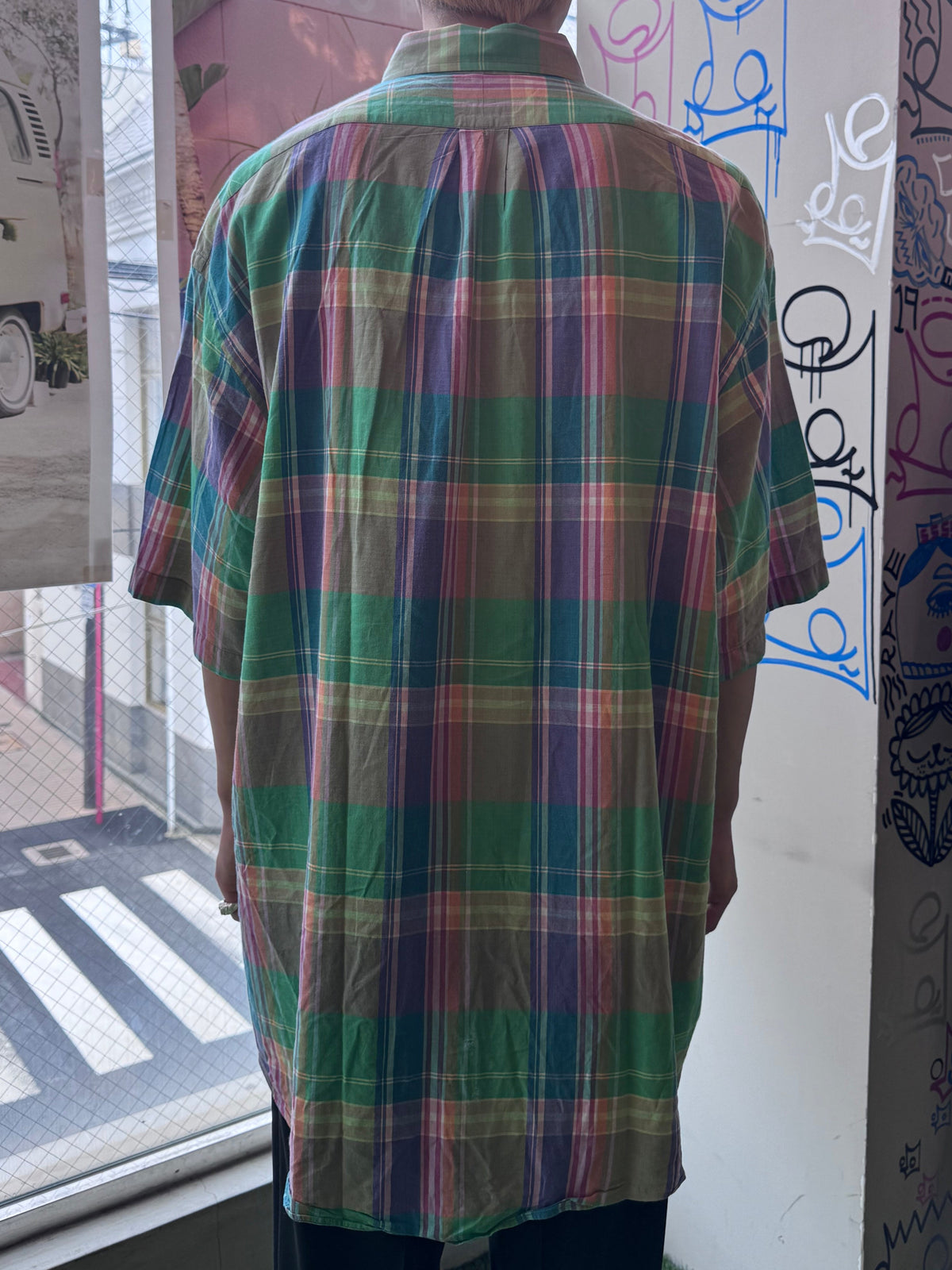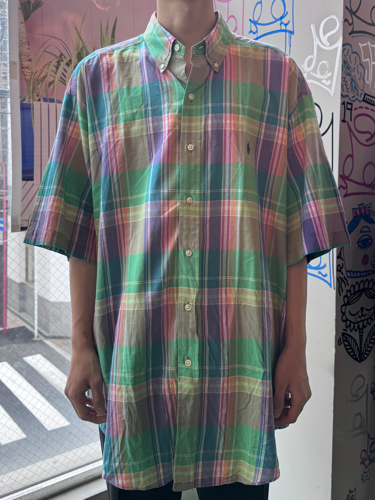 鮮やかなグリーン・パープル・ピンク・ブルーなどのマルチカラーで構成されたマドラスチェック柄が、ラルフらしいクラシックな中にも遊び心を感じさせる一着。