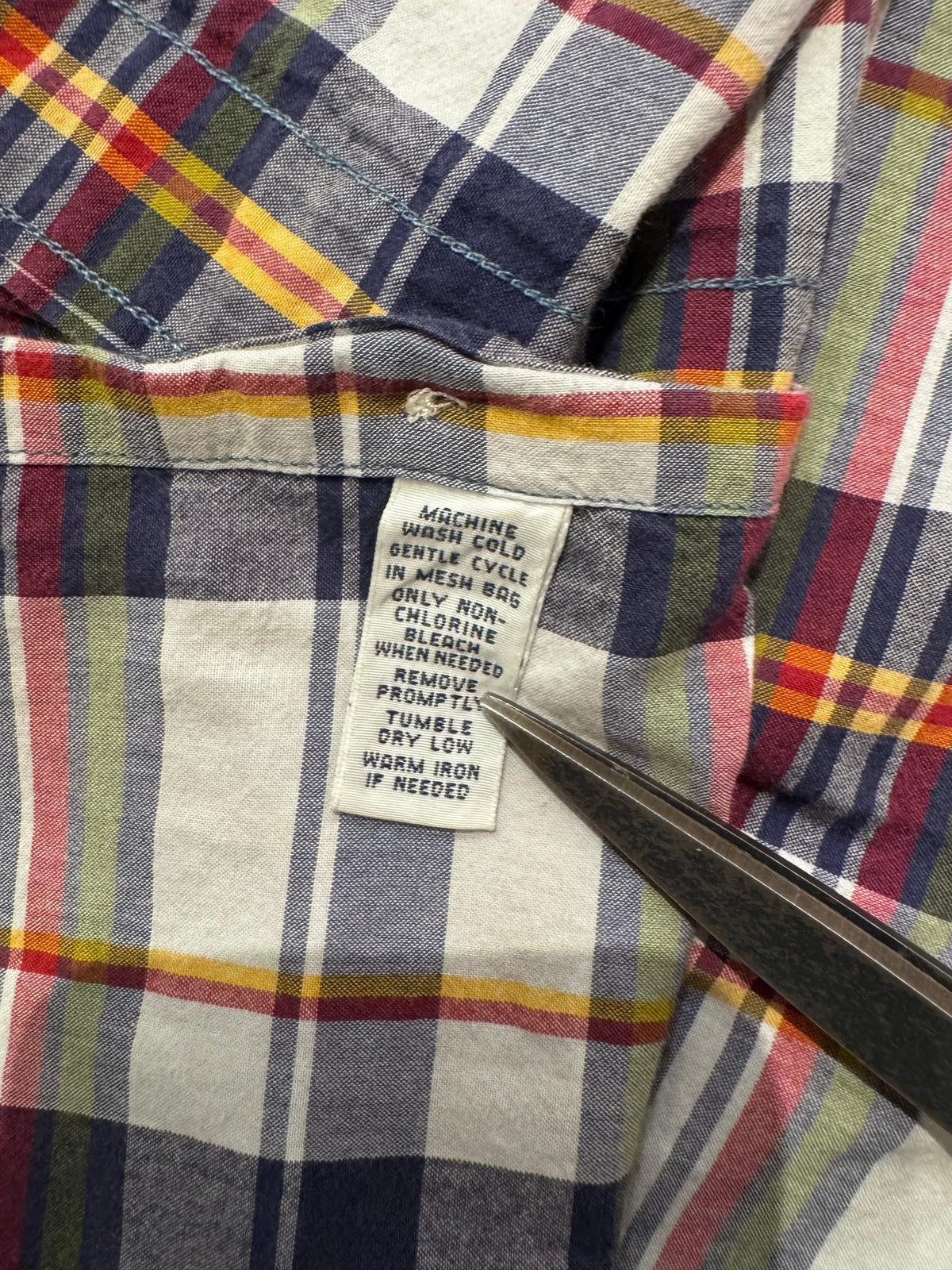 ホワイトをベースに、ネイビー・レッド・イエロー・グリーンが織り交ざったマドラスチェック柄で、落ち着きのある中にも程よい華やかさを演出してくれる一着。