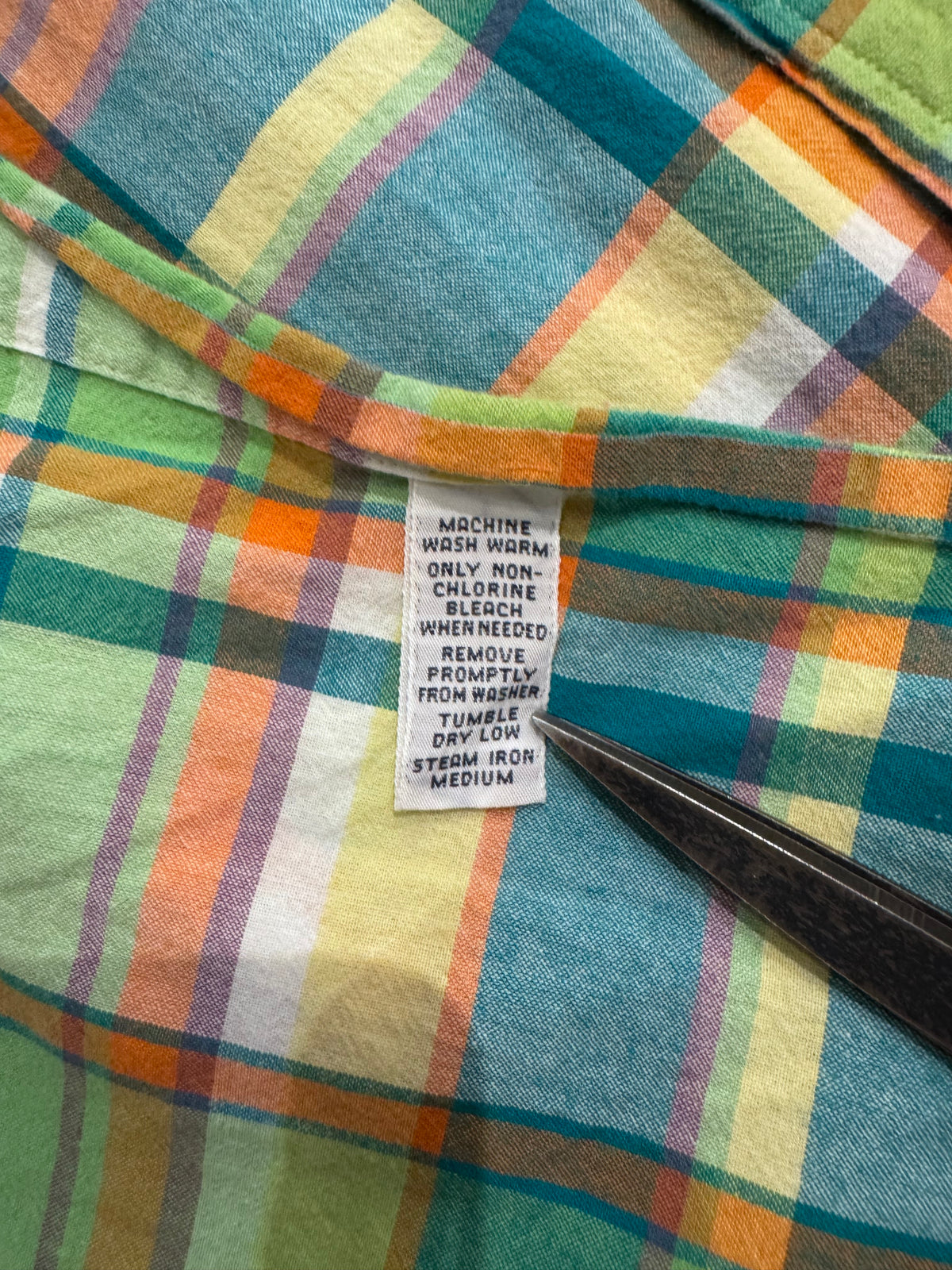 鮮やかなカラーリングが目を惹くマドラスチェック柄のボタンダウンシャツ。