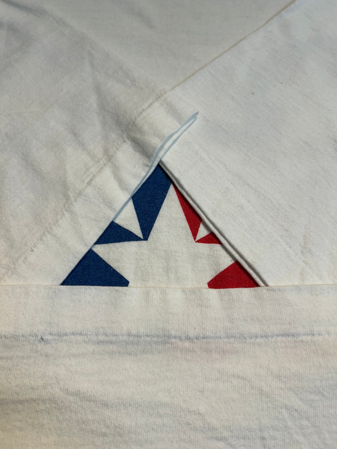 フロントにはアメリカ国旗のカラーを思わせるレッド・ホワイト・ブルーの星柄が、ミッキーマウスのシルエット内に大胆にデザインされています。
