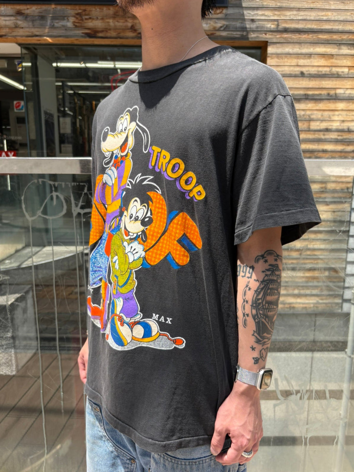 90sアニメ『Goof Troop(グーフィーとマックス)』の世界観を落とし込んだ、インパクト抜群のキャラT。