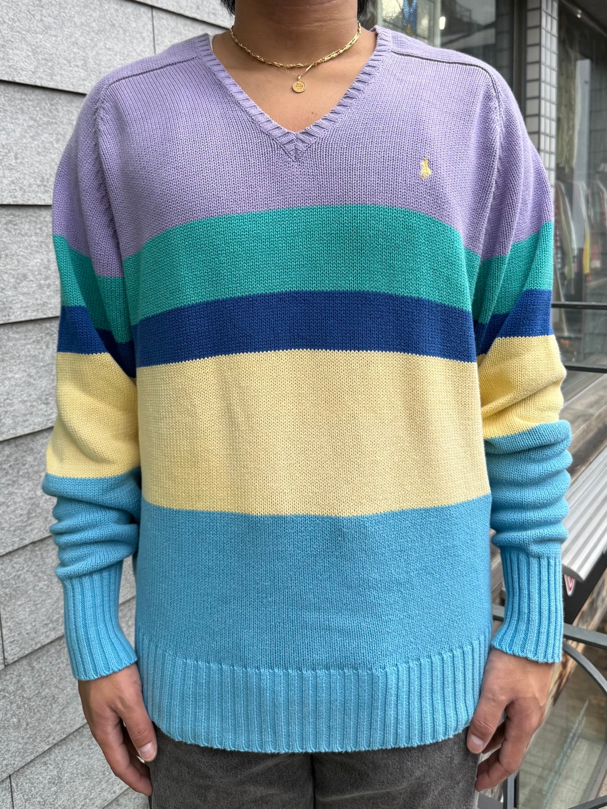 00's Polo by Ralph Lauren「Pastel Multi-Stripe」Vネックニット