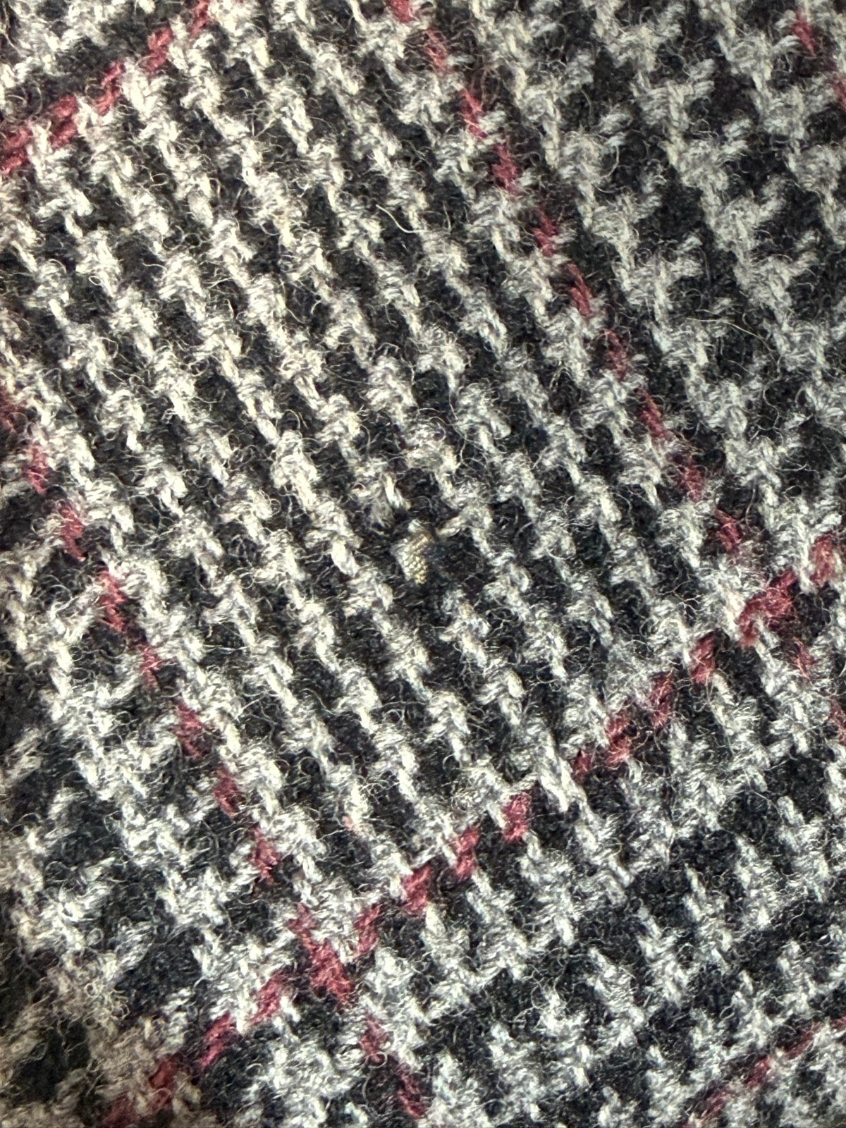 グレンチェックにボルドーのラインが走る上品な柄は、クラシックなブリティッシュムードとアメトラの両方を感じさせます。
