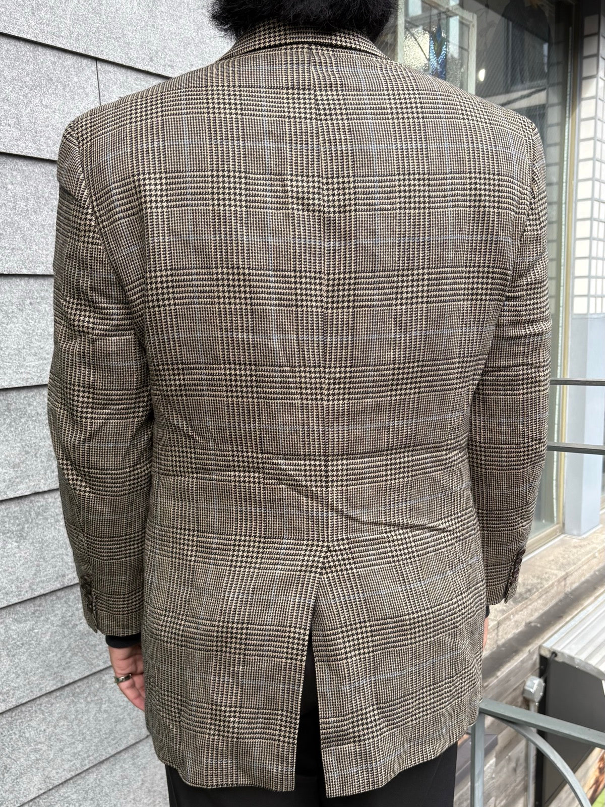 英国調のクラシックなプリンス・オブ・ウェールズ柄で、トラッドな雰囲気と上品さを兼ね備えた一着です。