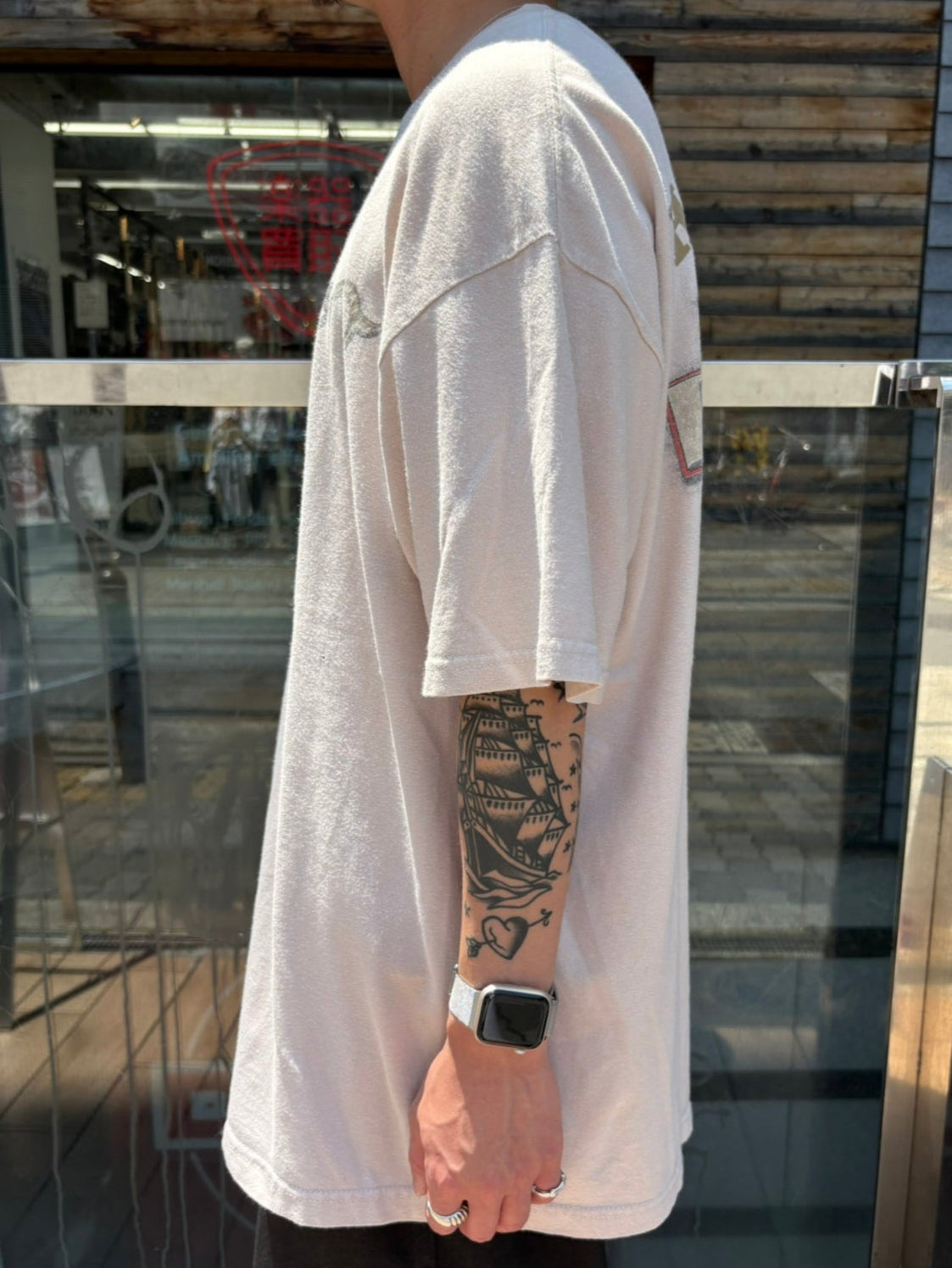 ナチュラルカラーのフェード感が古着らしい雰囲気を演出。