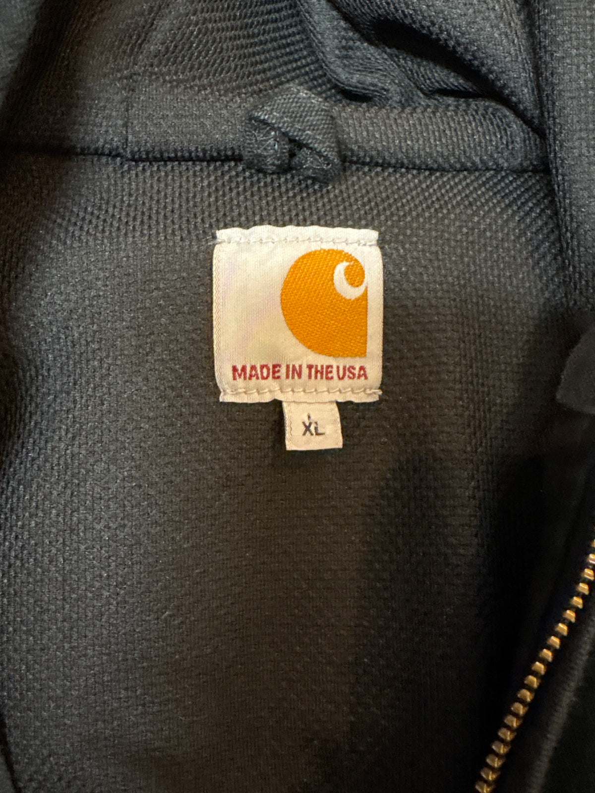 フロントにはCarhartt刻印入りの真鍮ジップを使用し、無駄のないシンプルなデザインが魅力。
