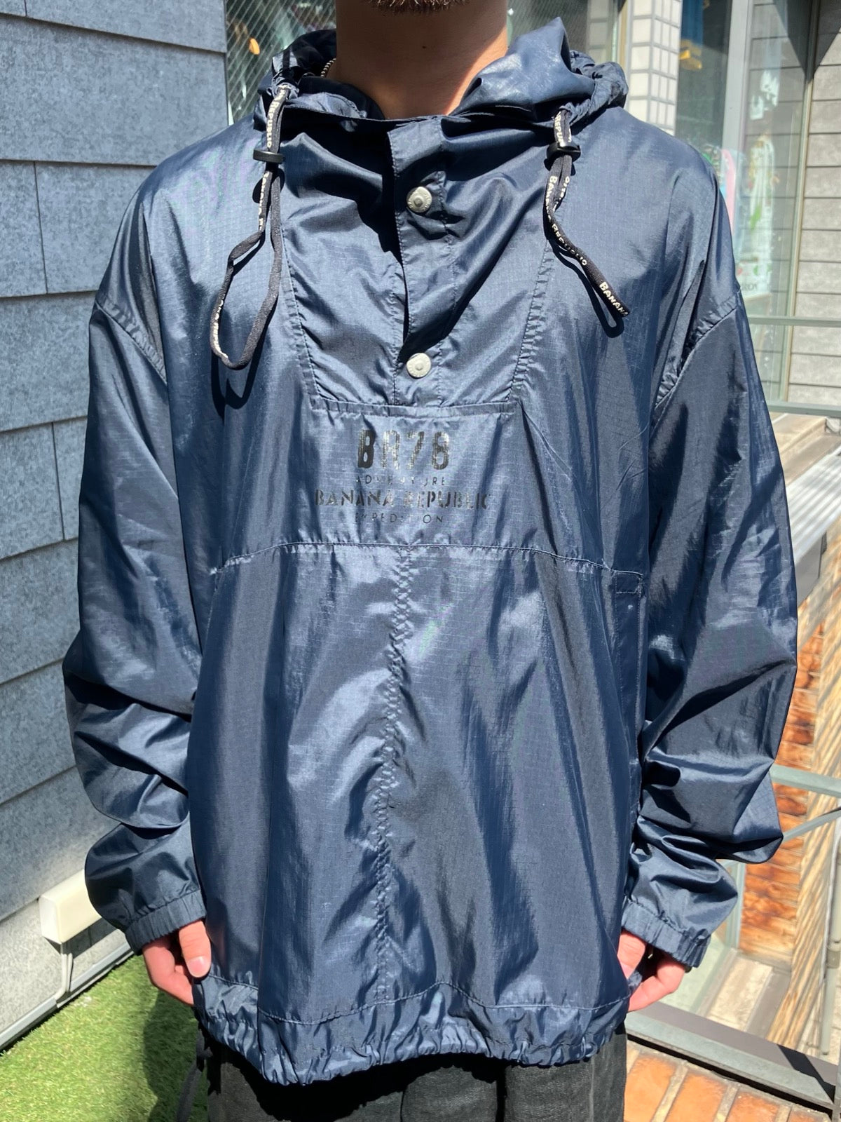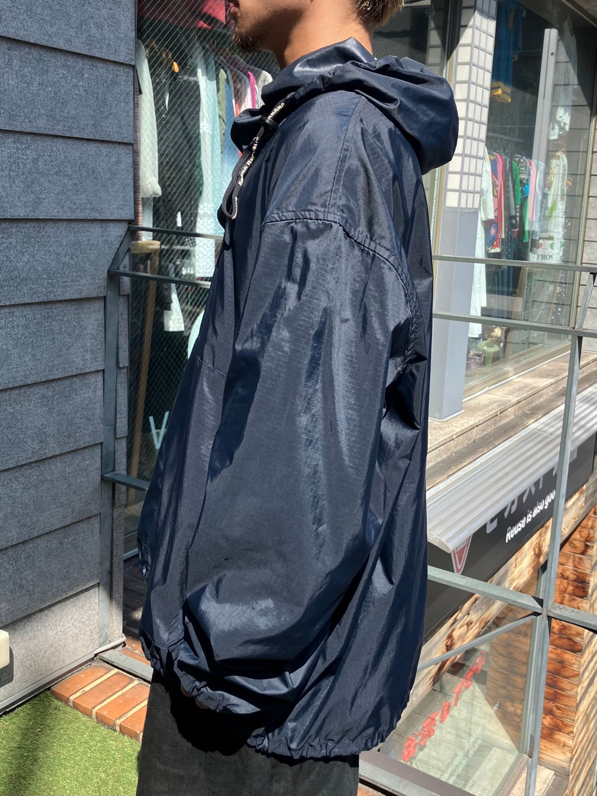 軽量なナイロン素材を使用し、フード付きでアウトドアにも最適なデザイン。