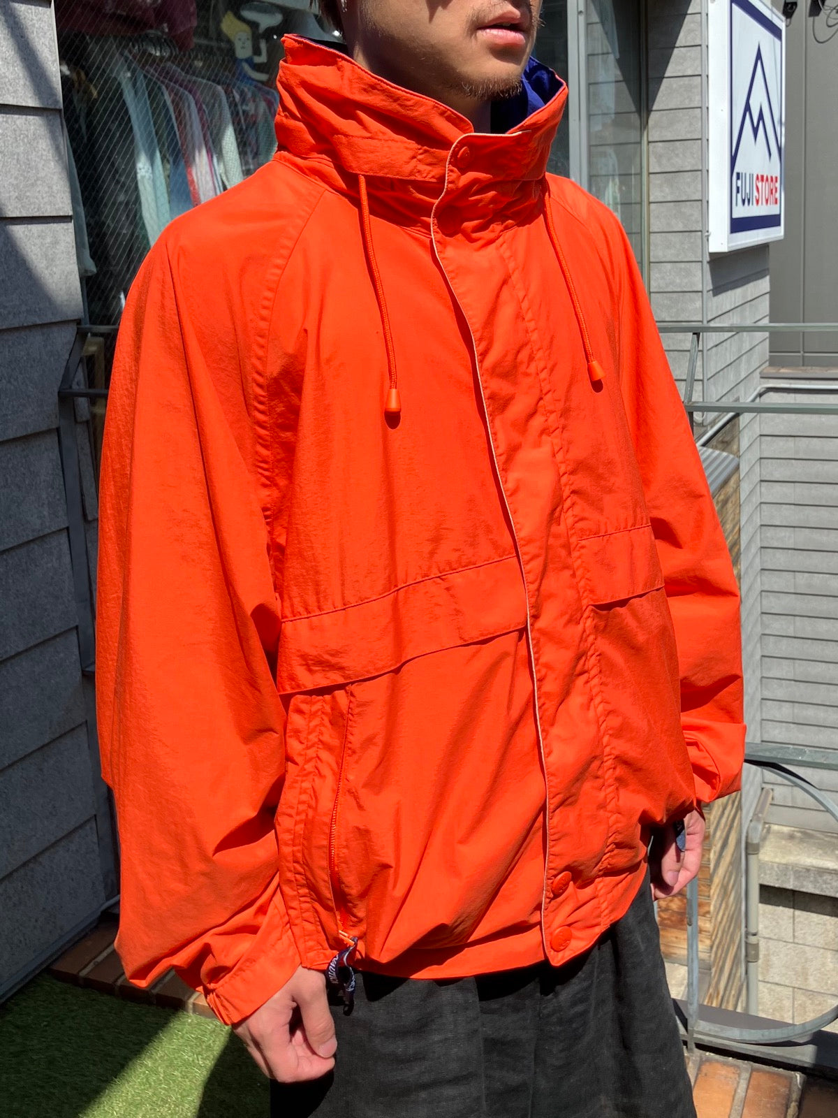 鮮やかなオレンジカラーが目を惹く一着で、フード付きのデザインとメッシュライナーにより快適な着心地を実現。