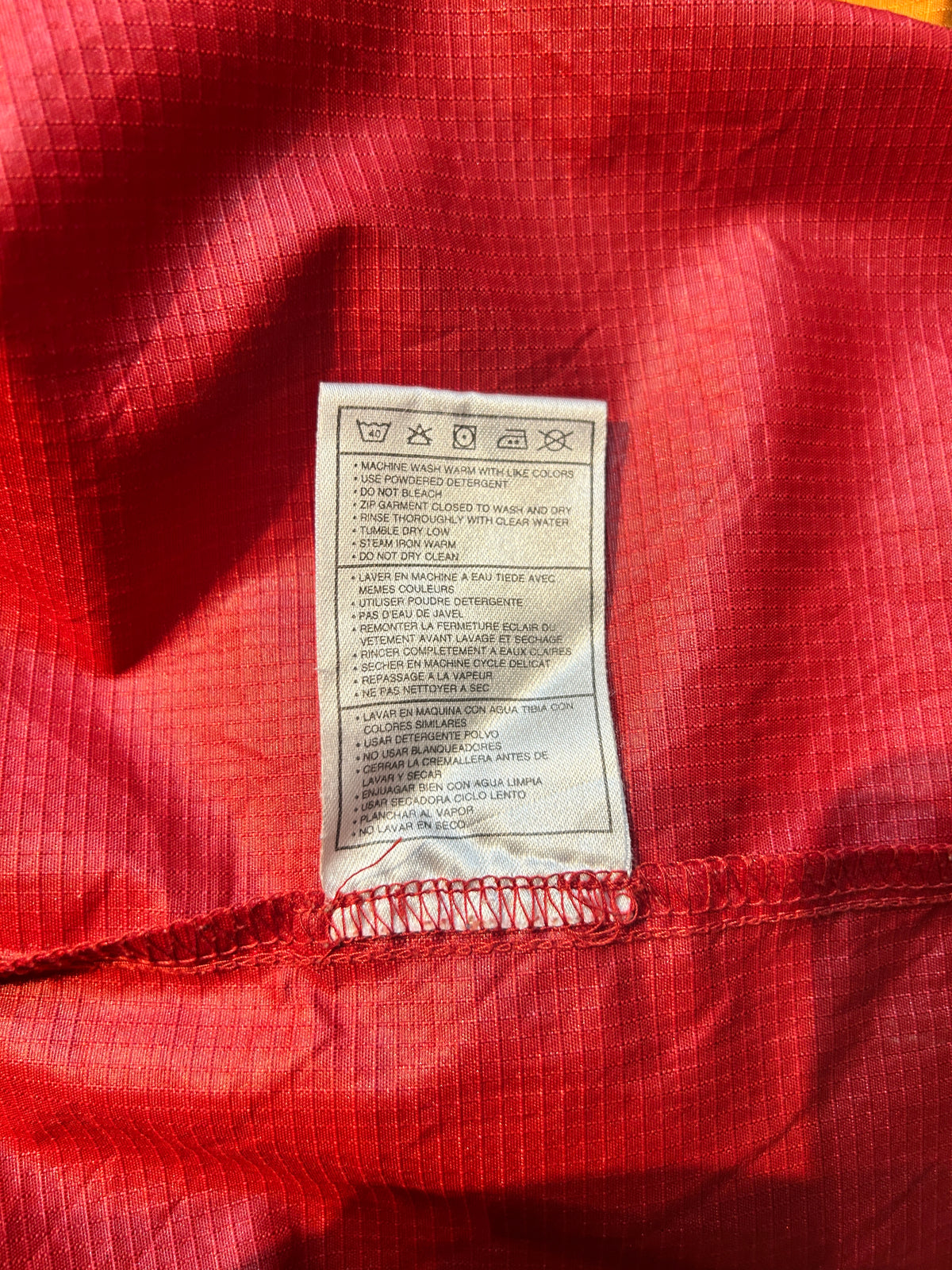 鮮やかなレッドにブラックジップとイエローロゴの配色が際立ち、機能美とデザイン性を兼備。