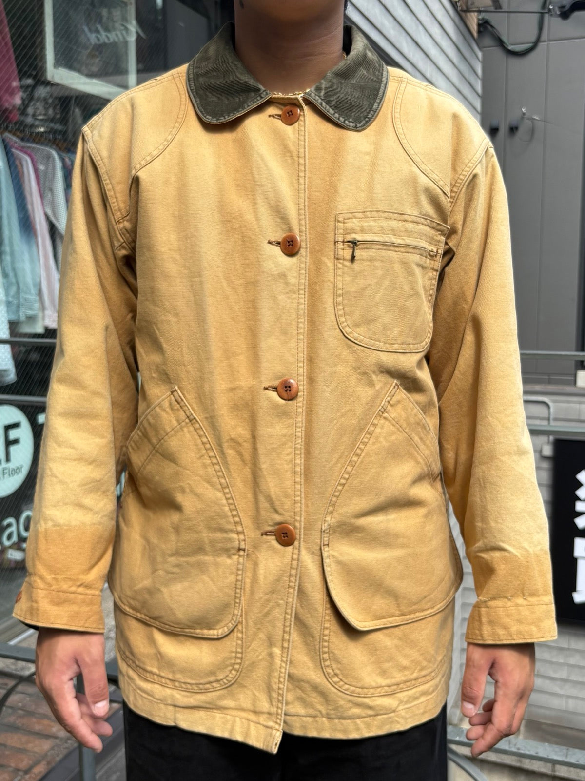 ベージュのキャンバス地にオリーブのコーデュロイ襟を合わせた無骨な佇まいが魅力です。