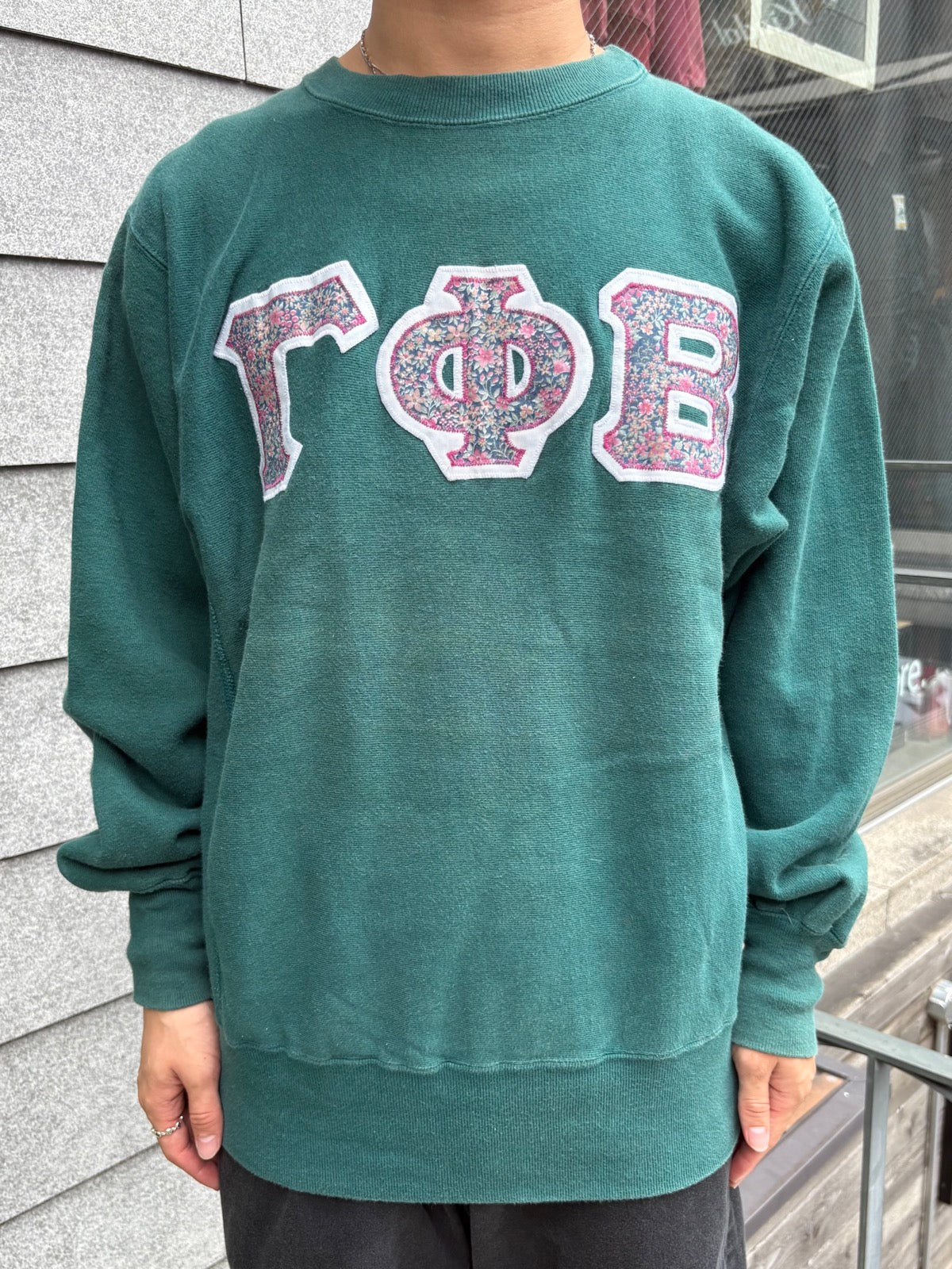 希少なMADE IN U.S.A.タグ付きで、フロントにはギリシャ文字「ΓΦB(ガンマ・ファイ・ベータ)」のワッペンが施されたカレッジものらしい一着。