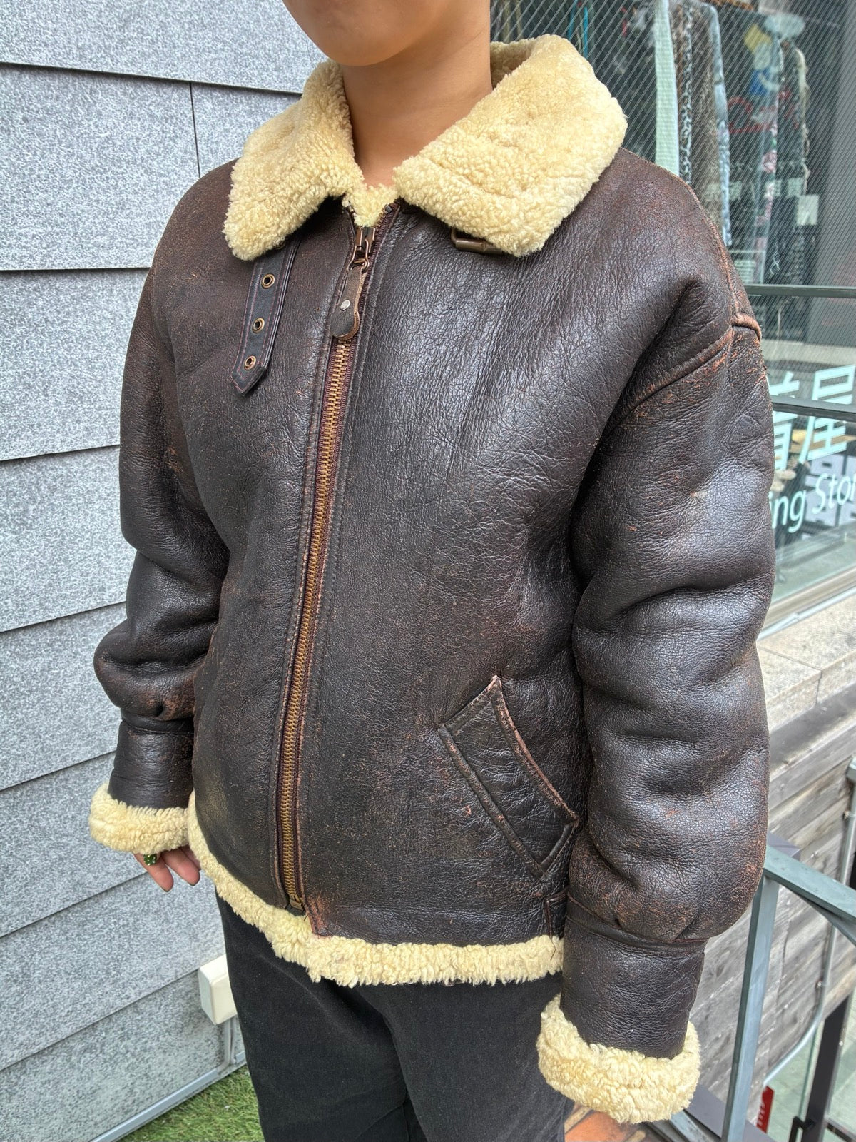 1970〜80年代頃の一着で、米軍B-3をベースにした重厚なデザインが特徴。肉厚なリアルムートンを贅沢に使用し、抜群の保温性と存在感を両立。