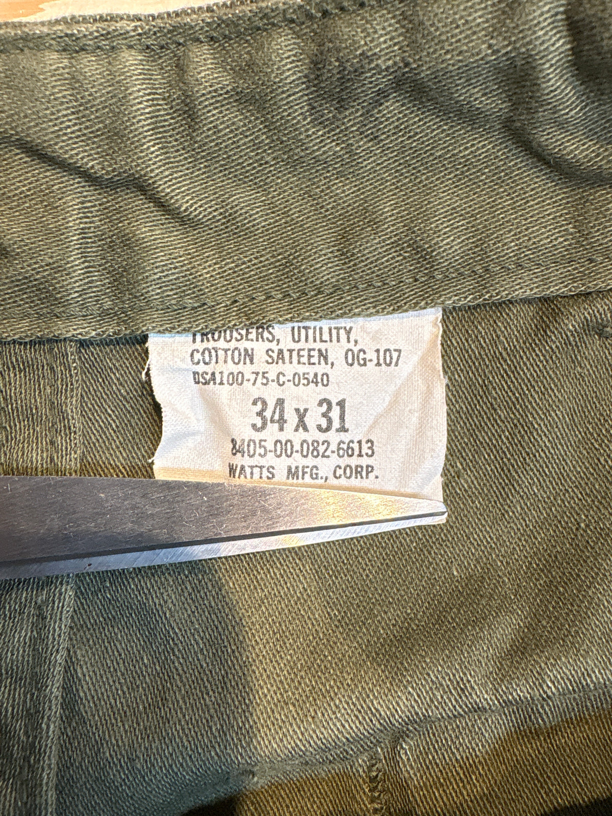 U.S. ARMYの実物ユーティリティパンツ “TROUSERS, UTILITY, COTTON SATEEN, OG-107”。