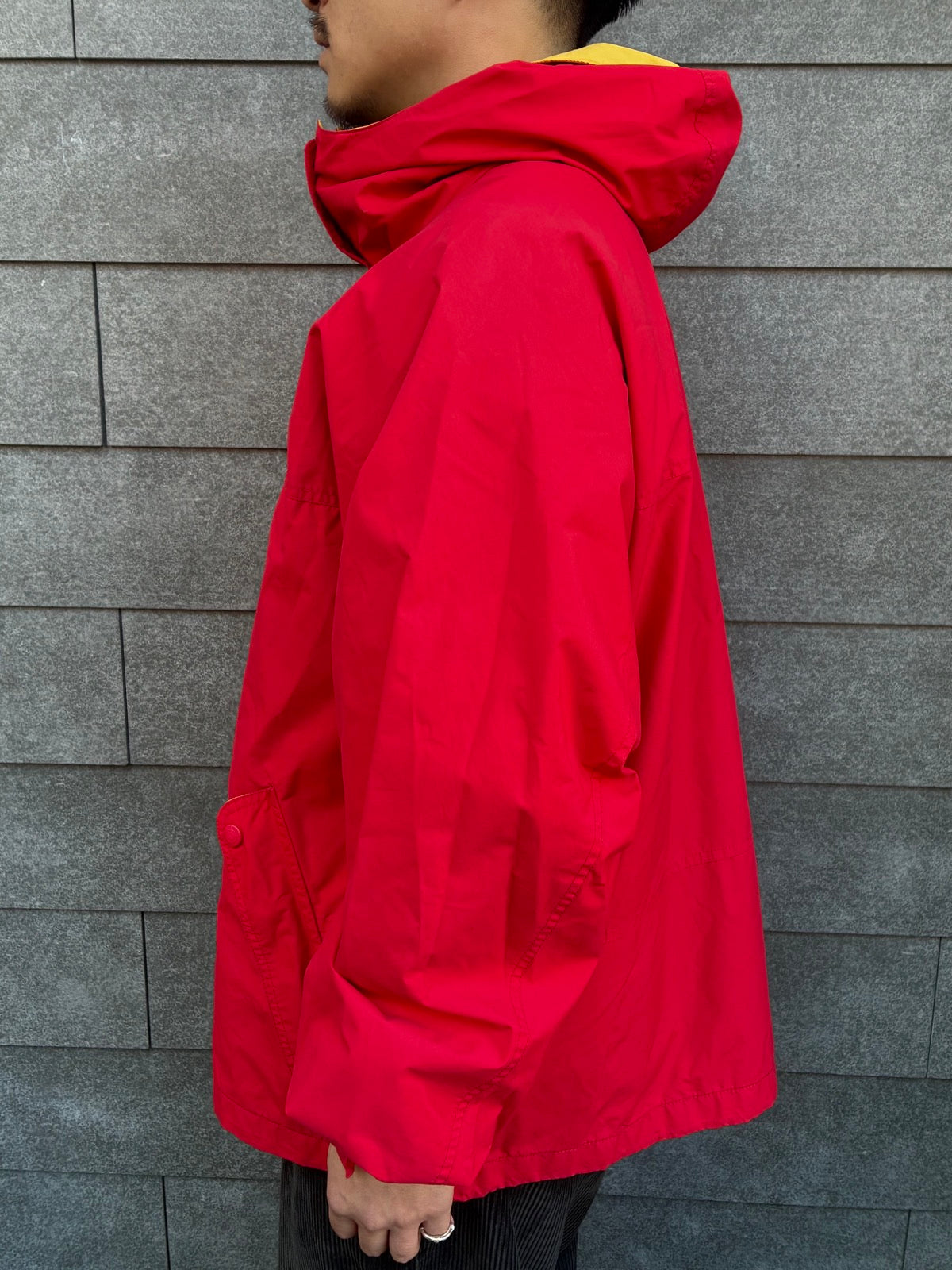 フロント比翼仕立て、ドローコード、立体フード、フラップポケットなど、80’sアウトドアらしい無骨なディテールがしっかり詰まっています。
