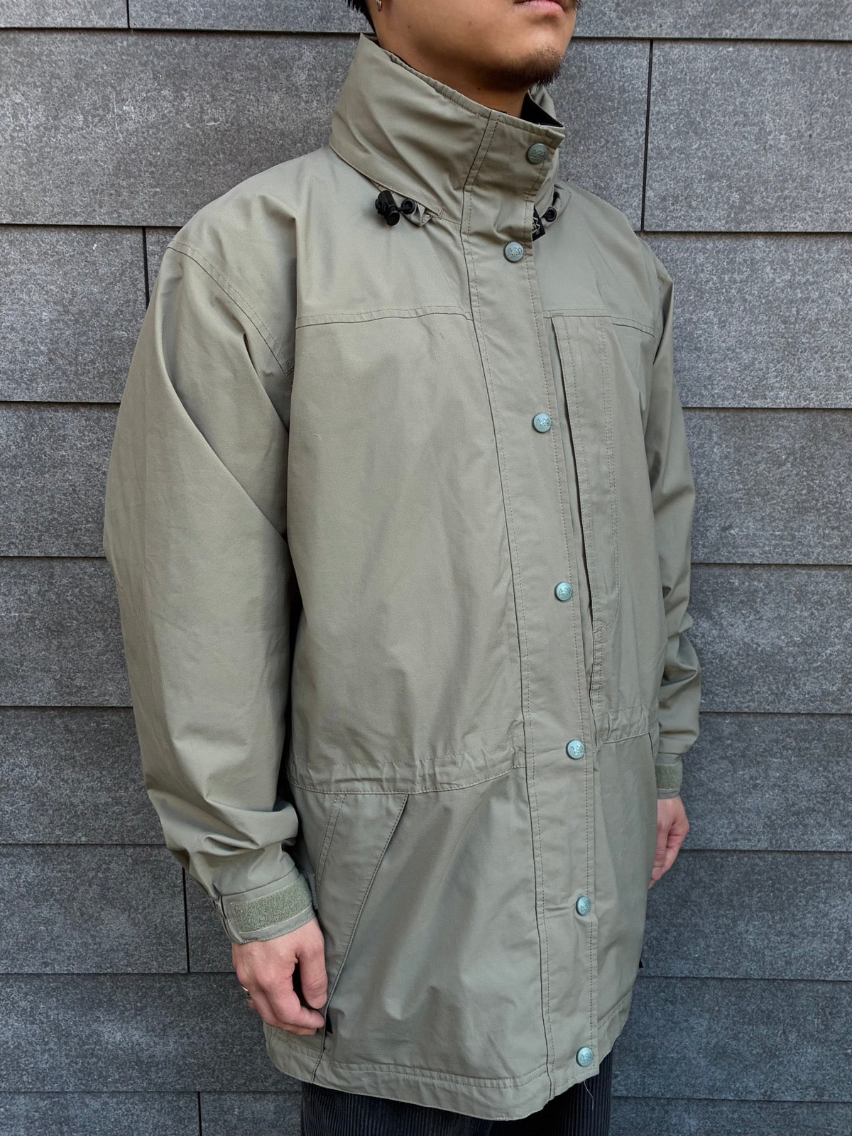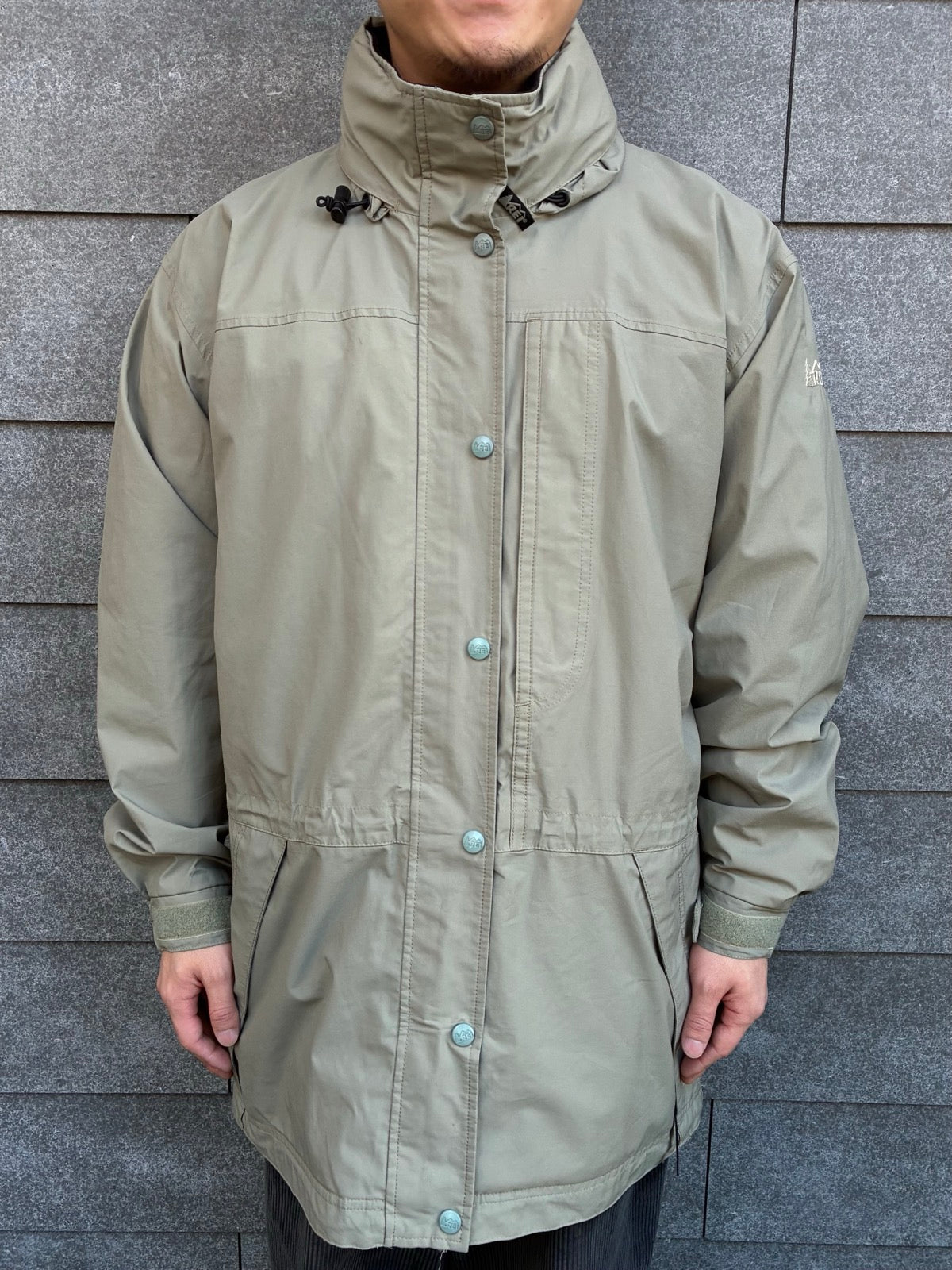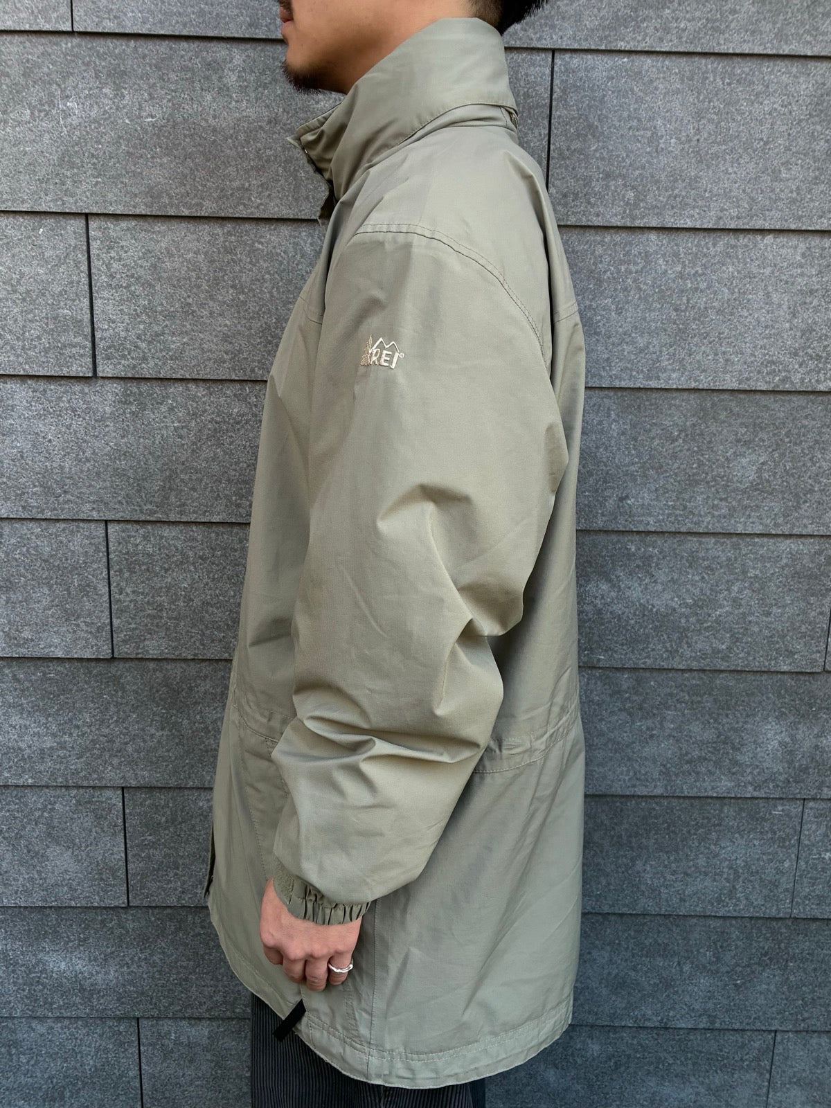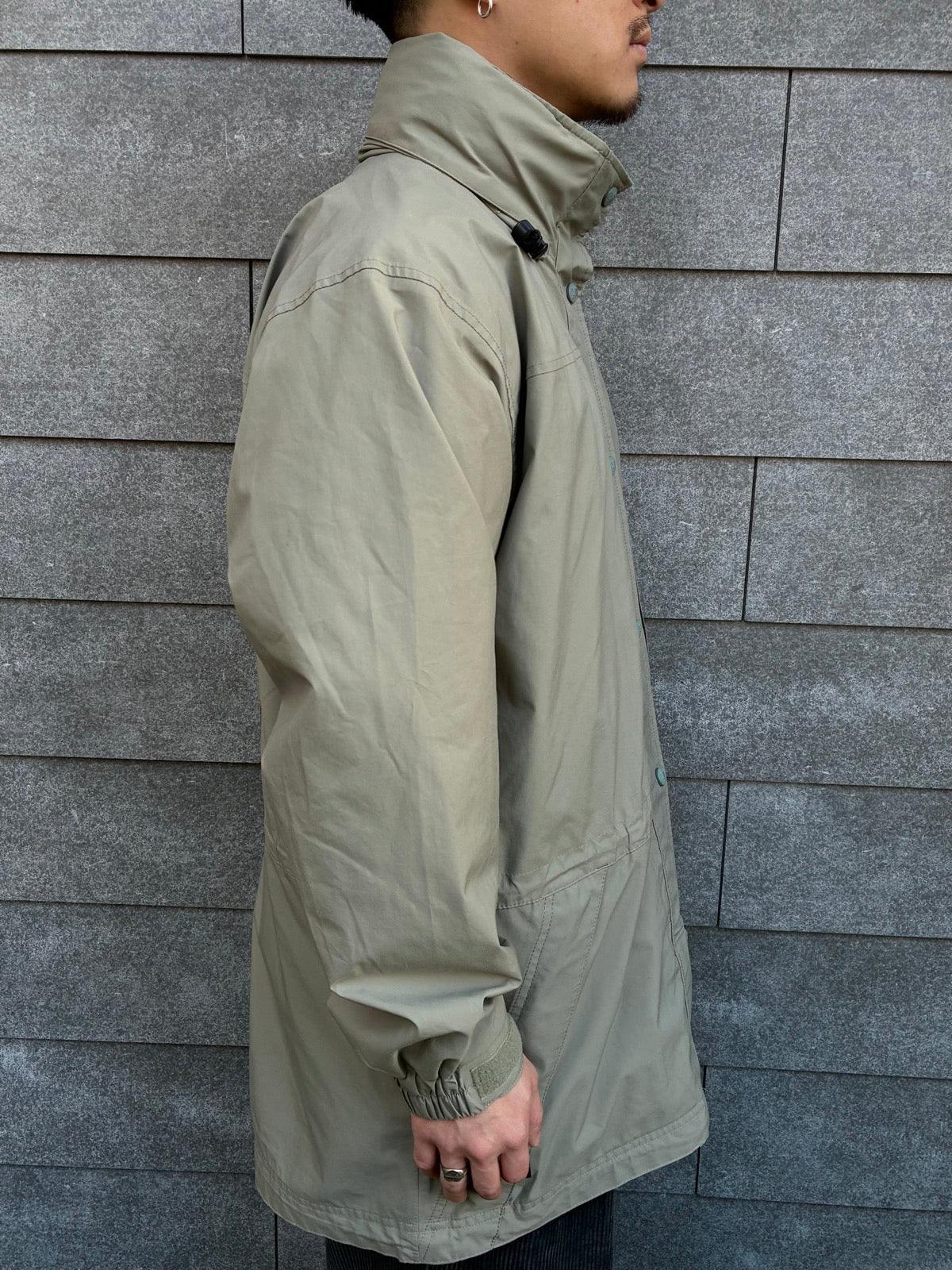 淡いカーキカラーが洗練された印象で、街着としてもアウトドアスタイルとしても使える万能アウターです。