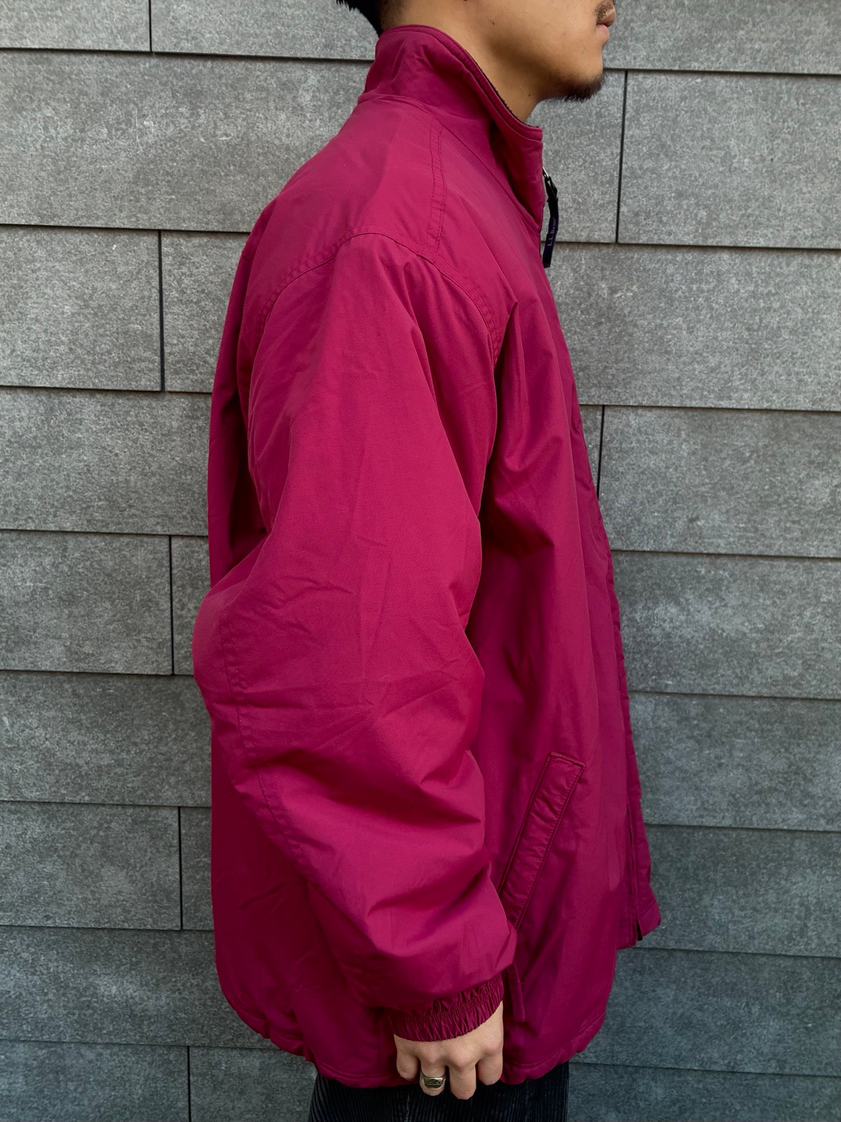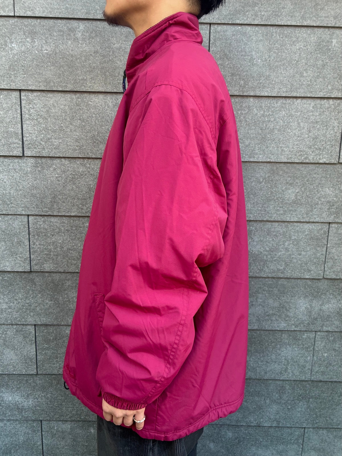 90年代のエルエルビーンらしいアウトドアムードを感じさせる、鮮やかなピンクのナイロンジャケットです。