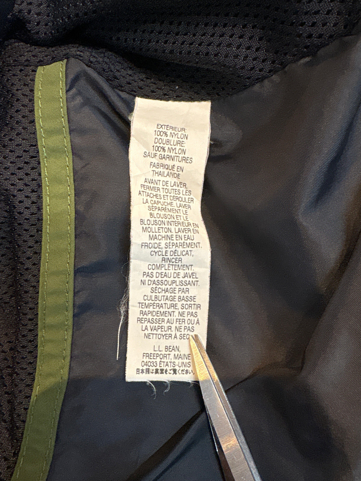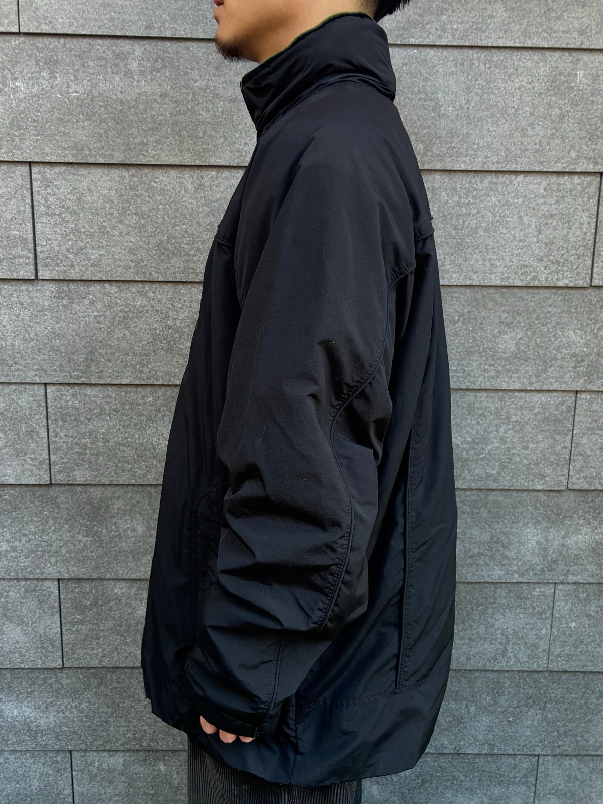 フロントは防風性の高い比翼仕立て、袖口はベルクロ仕様で調整可能。落ち着いたネイビーカラーで扱いやすく、古着初心者にもおすすめです。