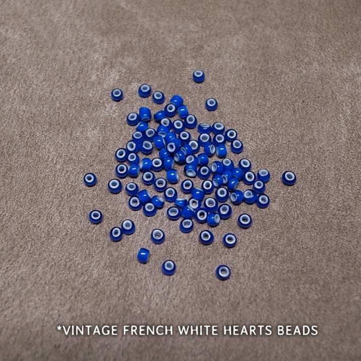 デットストック フレンチホワイトハーツビーズを使ったストレッチタイプブレスレットの紹介になります。