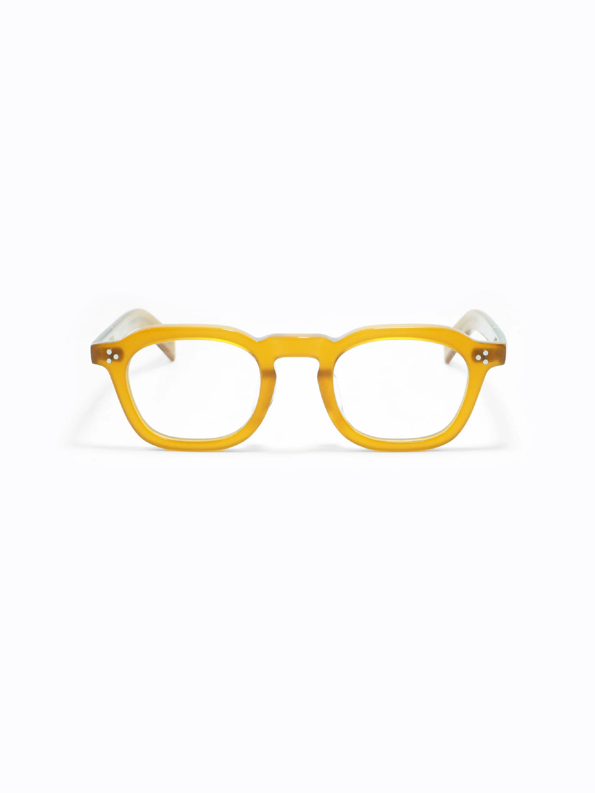 肉厚なフロントと3点のリアルリベットやテンプルデザインが特徴
