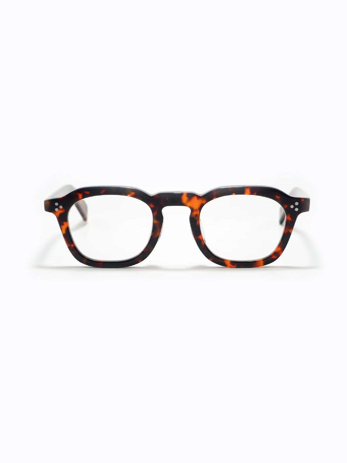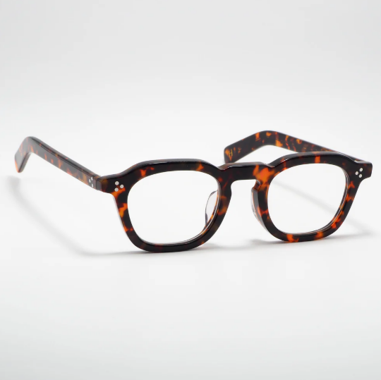 肉厚なフロントと3点のリアルリベットやテンプルデザインが特徴