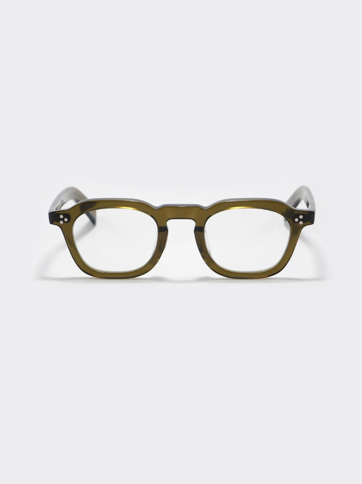 肉厚なフロントと3点のリアルリベットやテンプルデザインが特徴