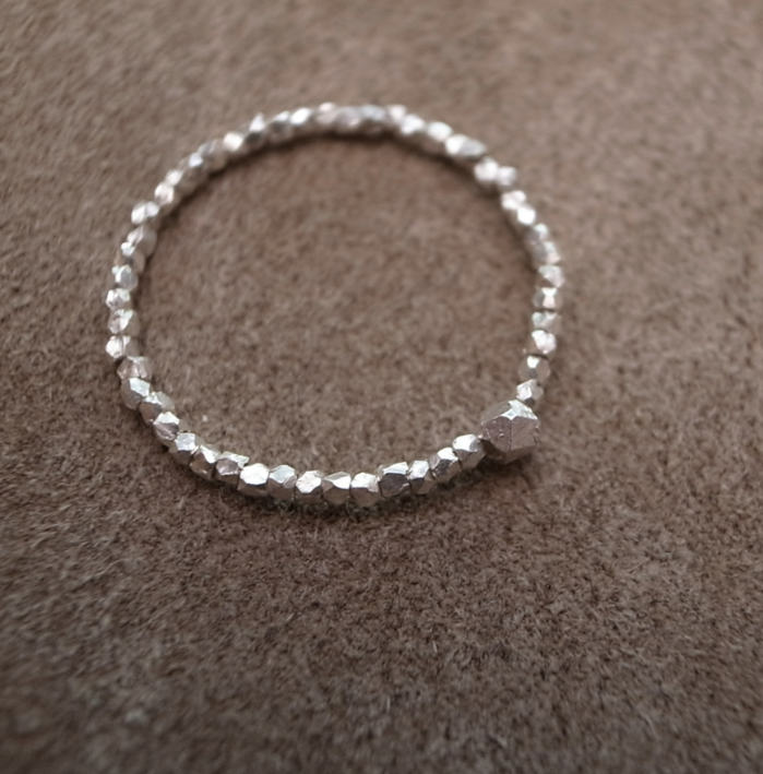 そのカレンシルバーのキューブカットビーズを使ったシルバービーズリングになります。