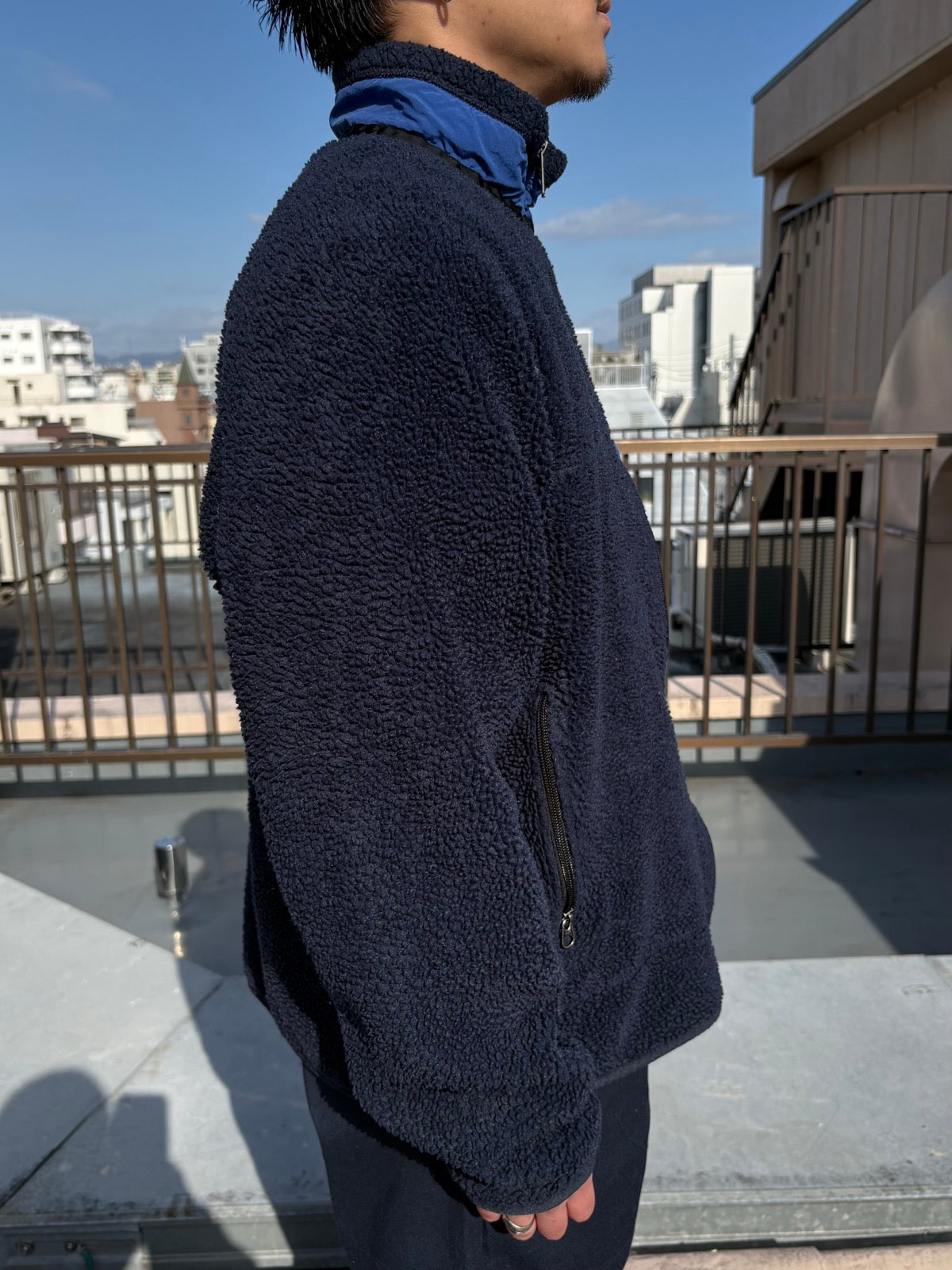外側はふんわりとしたボアフリース、内側には防風メッシュを採用し、冷たい風をしっかり遮断。