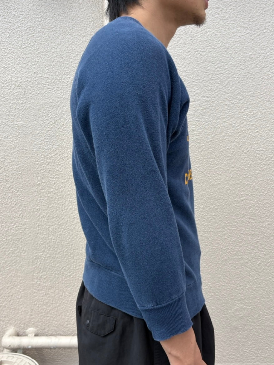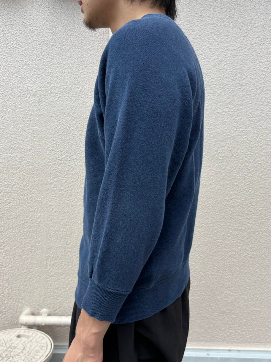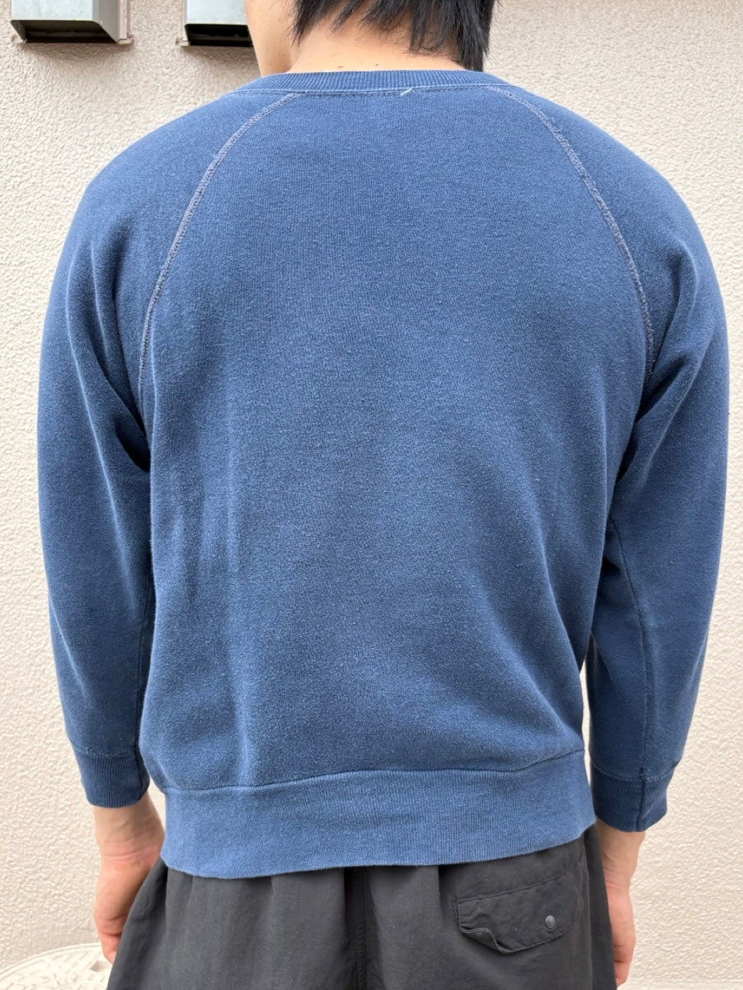 生地は肉厚なコットン裏起毛で、程よくフェードしたネイビーの色合いとリブの締まり具合がヴィンテージならではの風合いを感じさせます。
