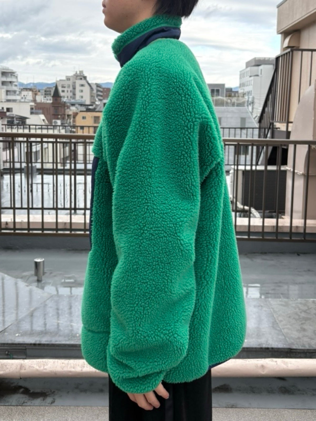 外側はふんわりとしたボアフリース、内側には防風メッシュを採用し、冷たい風をしっかり遮断。