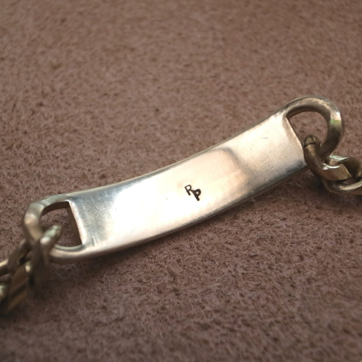 個人情報(イニシャルなど)などをプレートに刻んで戦場に向かったといわれるMIL. IDブレスレットです。