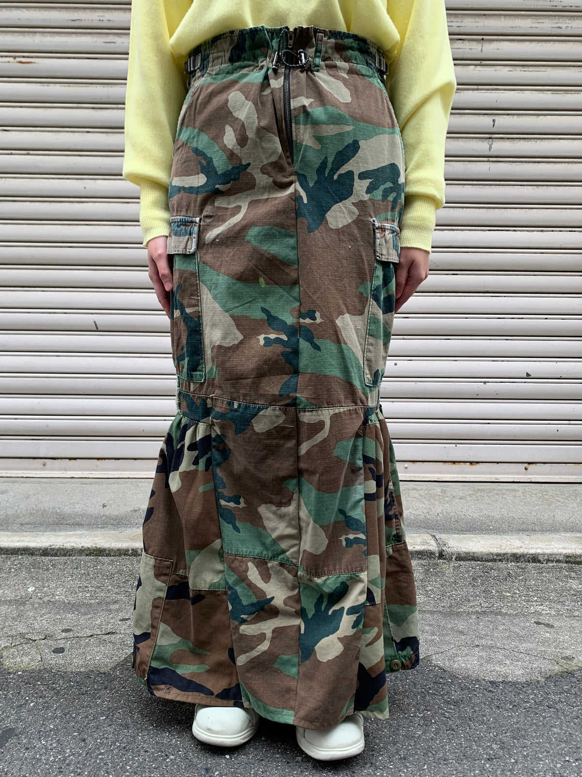 vintageのミリタリーの生地を使ったリメイクのロングスカートです。