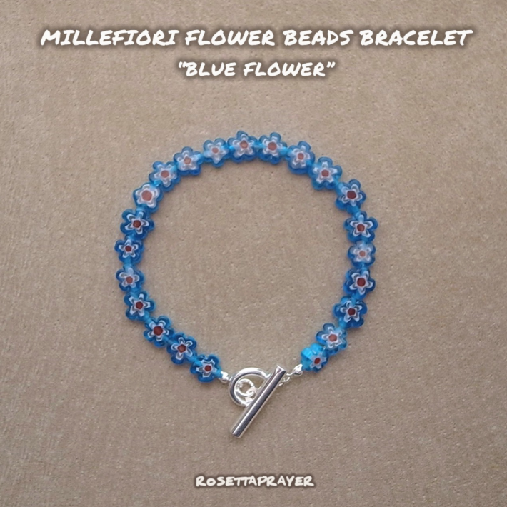 MILLEFIORI FLOWER BEADS BRACELET- BLUE FLOWER / ROSETTAPRAYER
