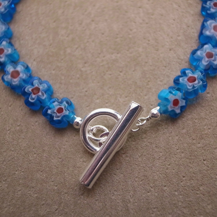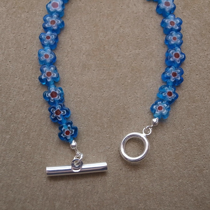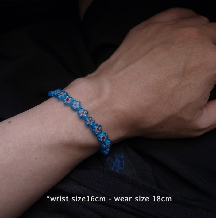 ミッレフィオーリ ビーズ ブレスレット- ブルー フラワー