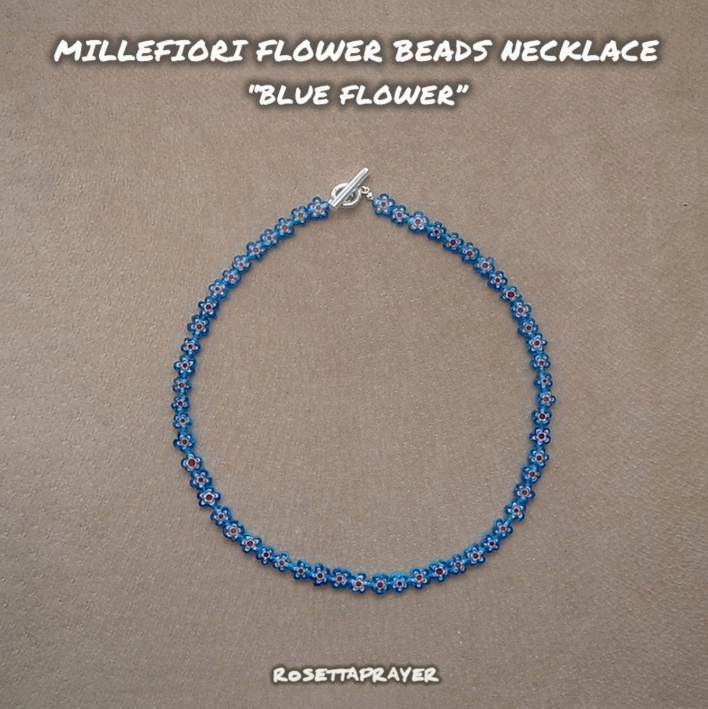 MILLEFIORI FLOWER BEADS NECKLACE-BLUE FLOWER / ROSETTAPRAYER