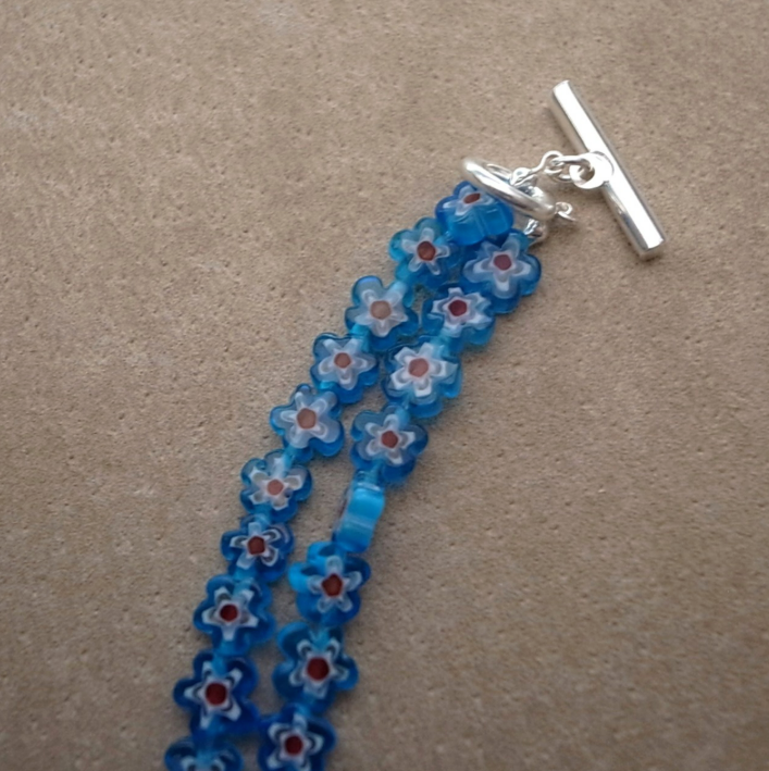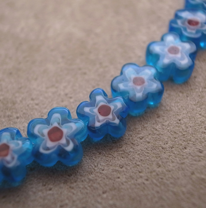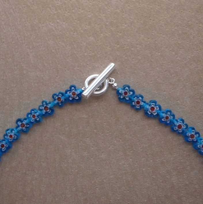 ミッレフィオーリ ビーズ ネックレス- ブルーフラワー