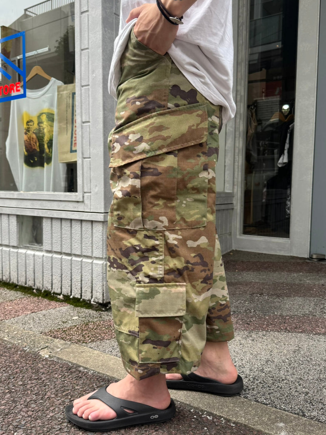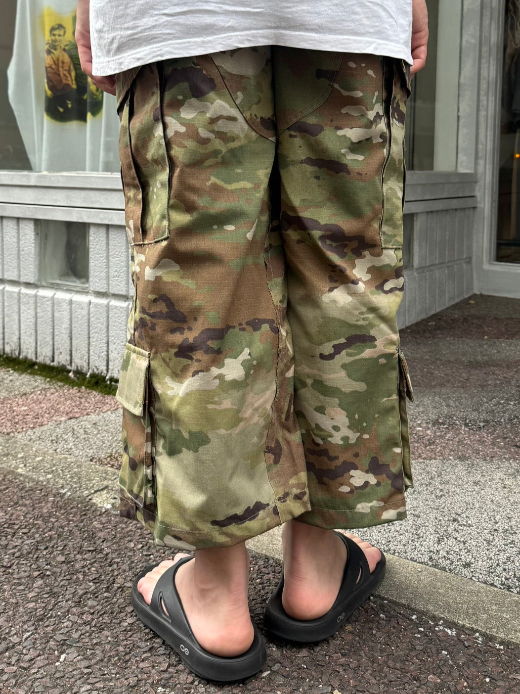 vintageのミリタリー生地を使ったリメイクのワイドパンツです。