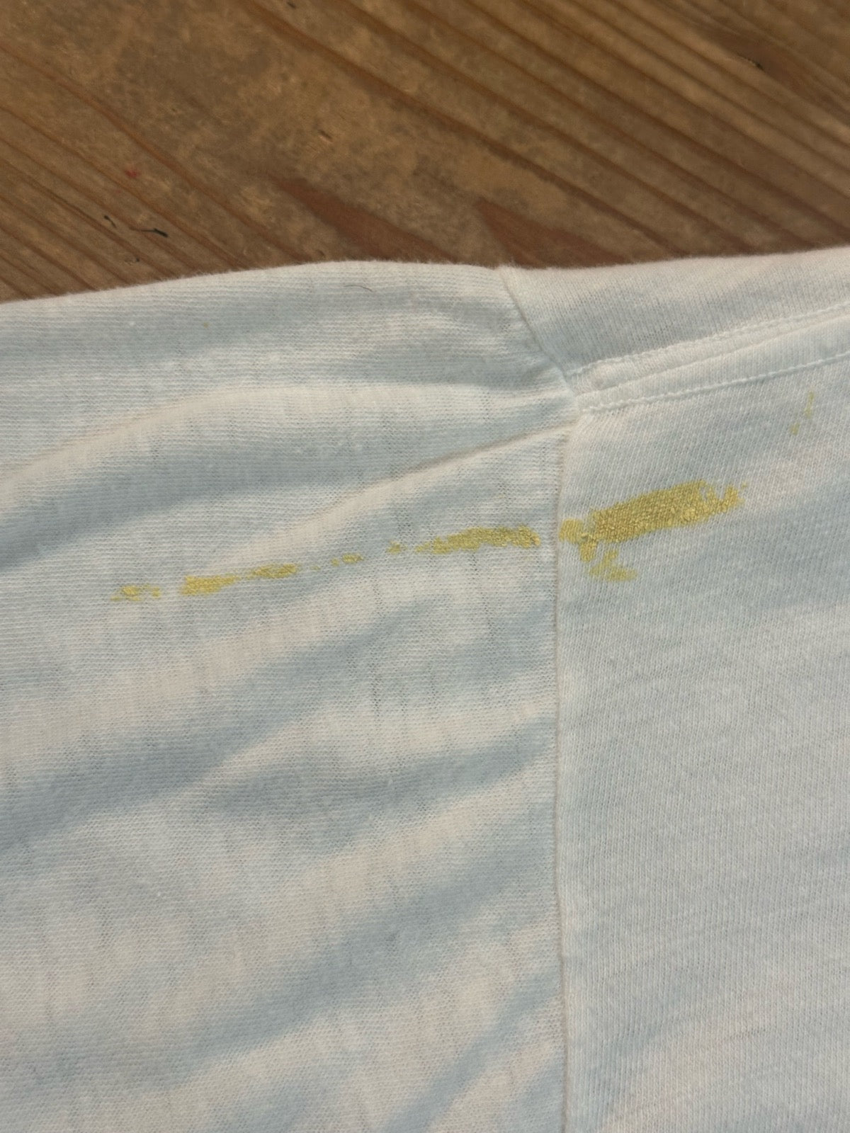 あくまで一つの目安とお考えいただきますようお願いします。多少の色褪せ・ダメージや薄い汚れなど、古着としての使用感の範囲内と判断したものは説明を省いている場合がございます。