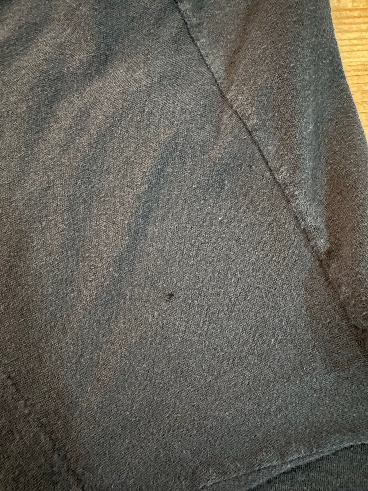 〇フロント部分真ん中、左袖、ピンホールあり。