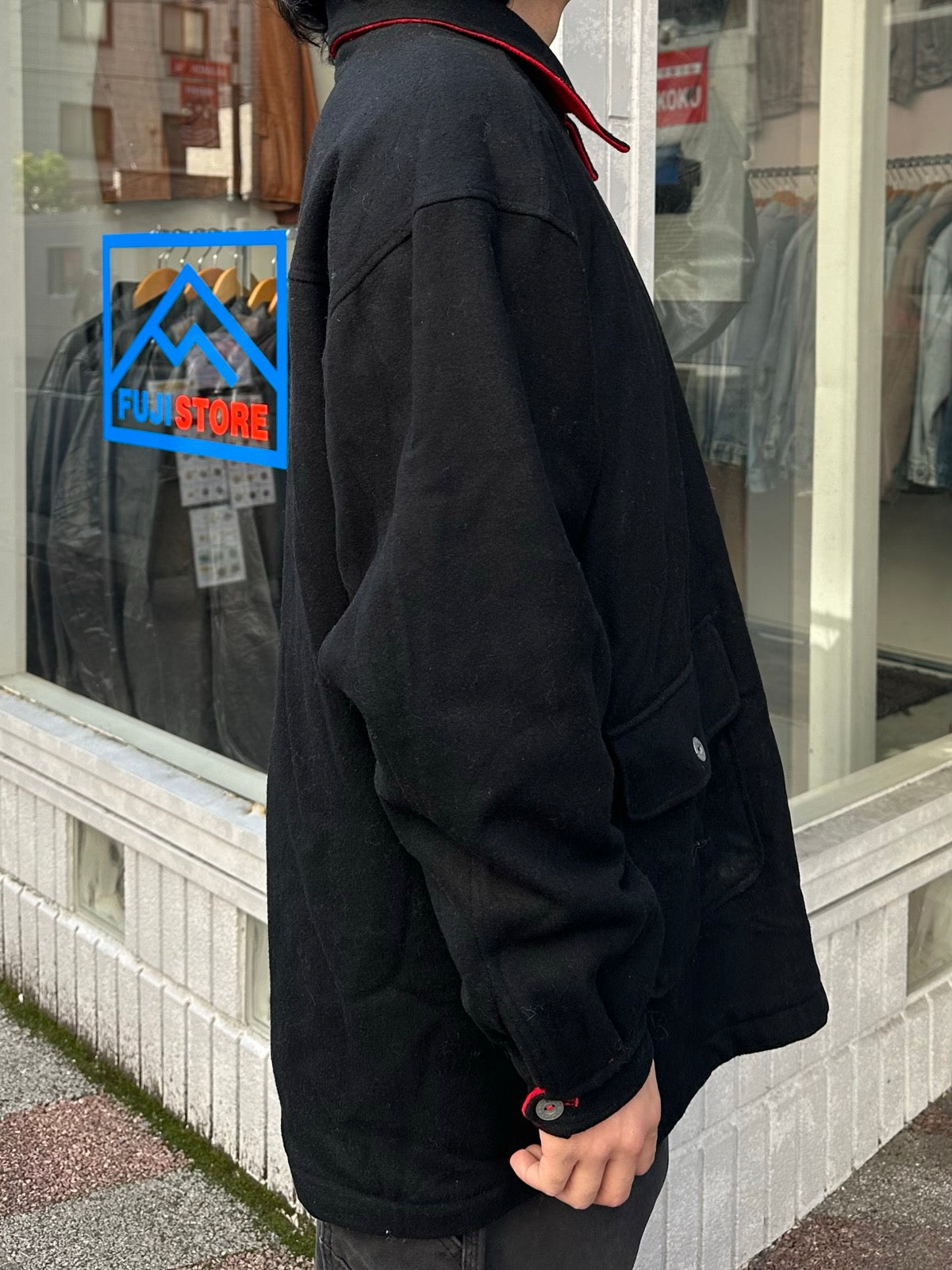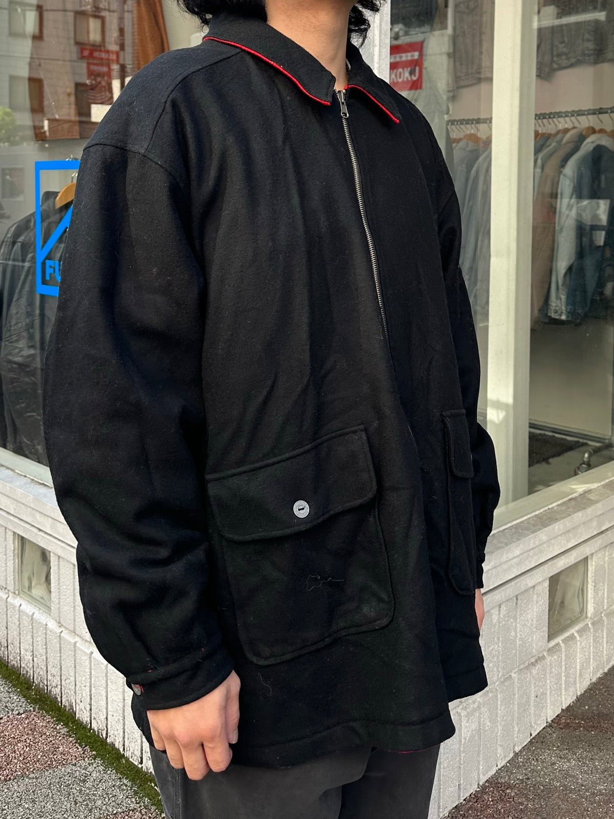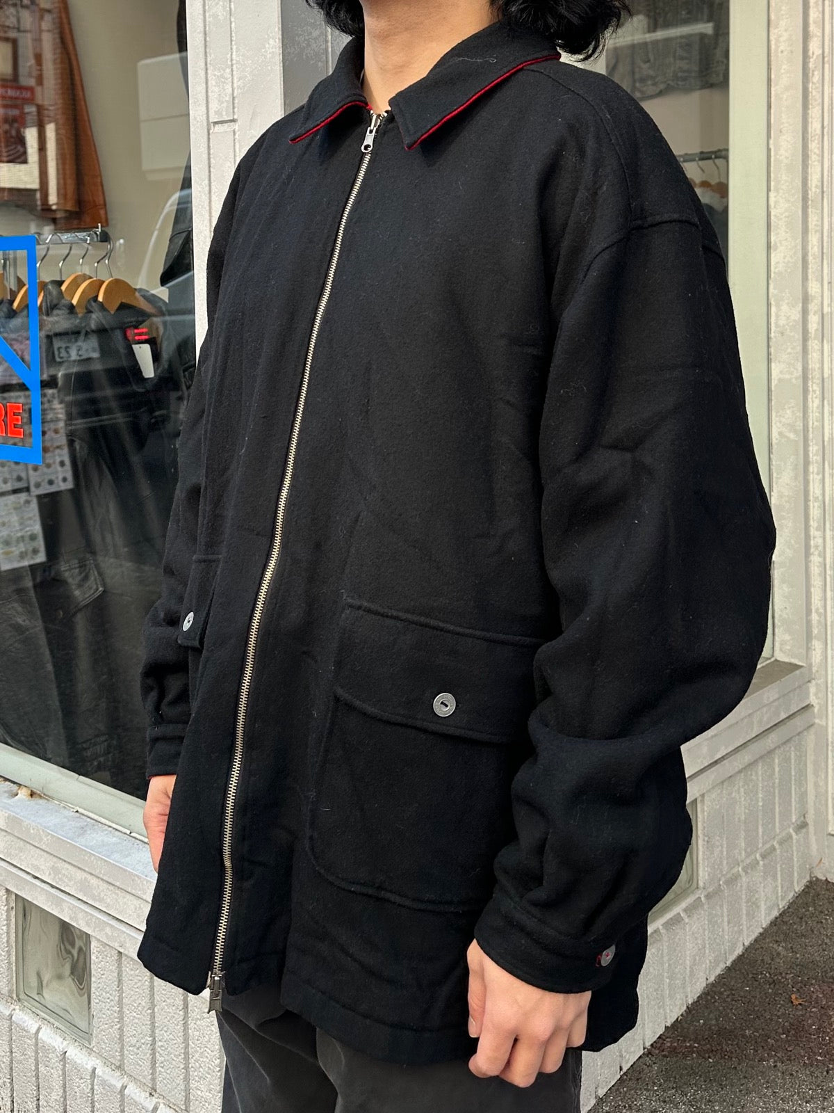 リーバーシブルになっており黒、赤の2色で楽しめるウールジャケットです。