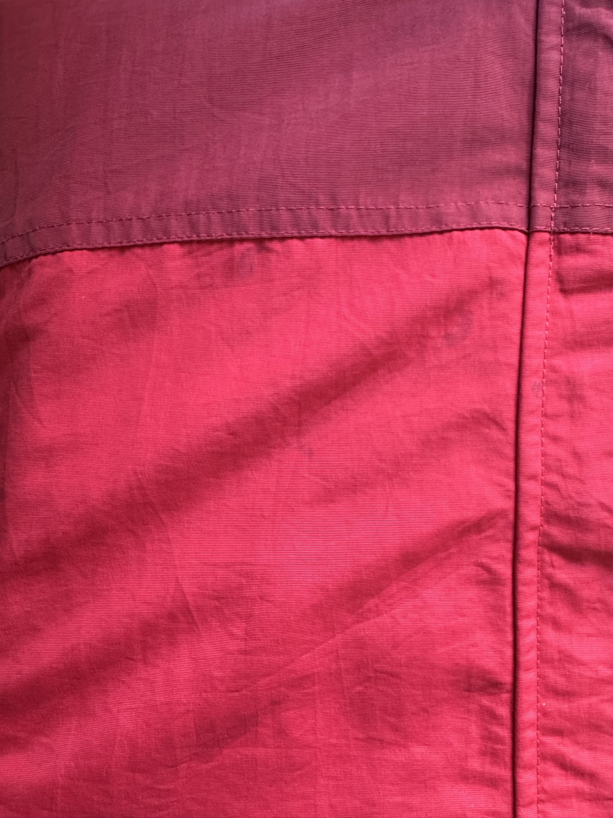 深みのあるレッドトーンで、アウトドアらしい切り返しが映える1着。