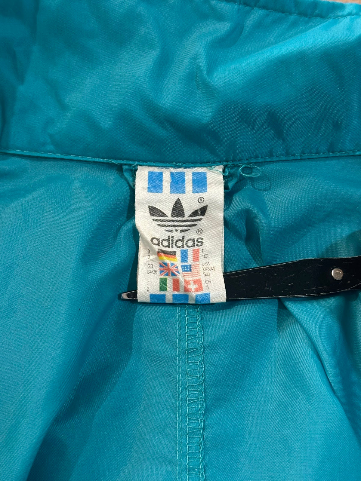 90年代らしい大胆な切り替えデザインが魅力のadidasナイロンジャケット。