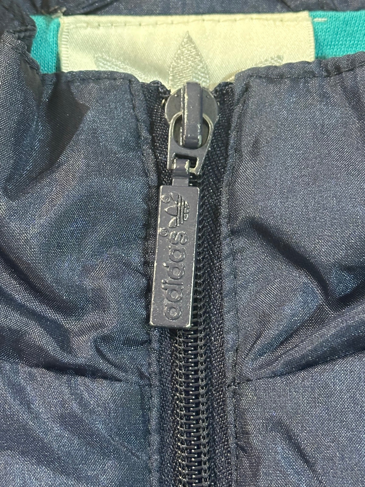 90年代らしい大胆な切り替えデザインが魅力のadidasナイロンジャケット。