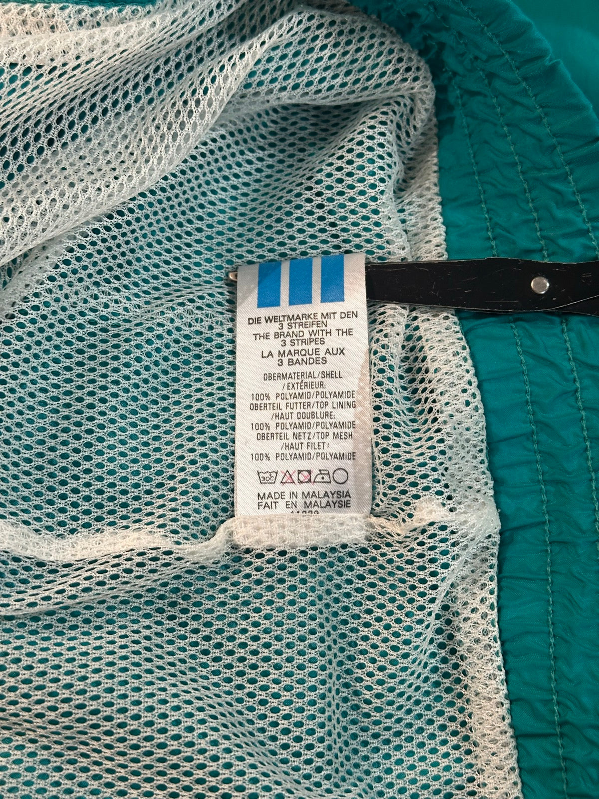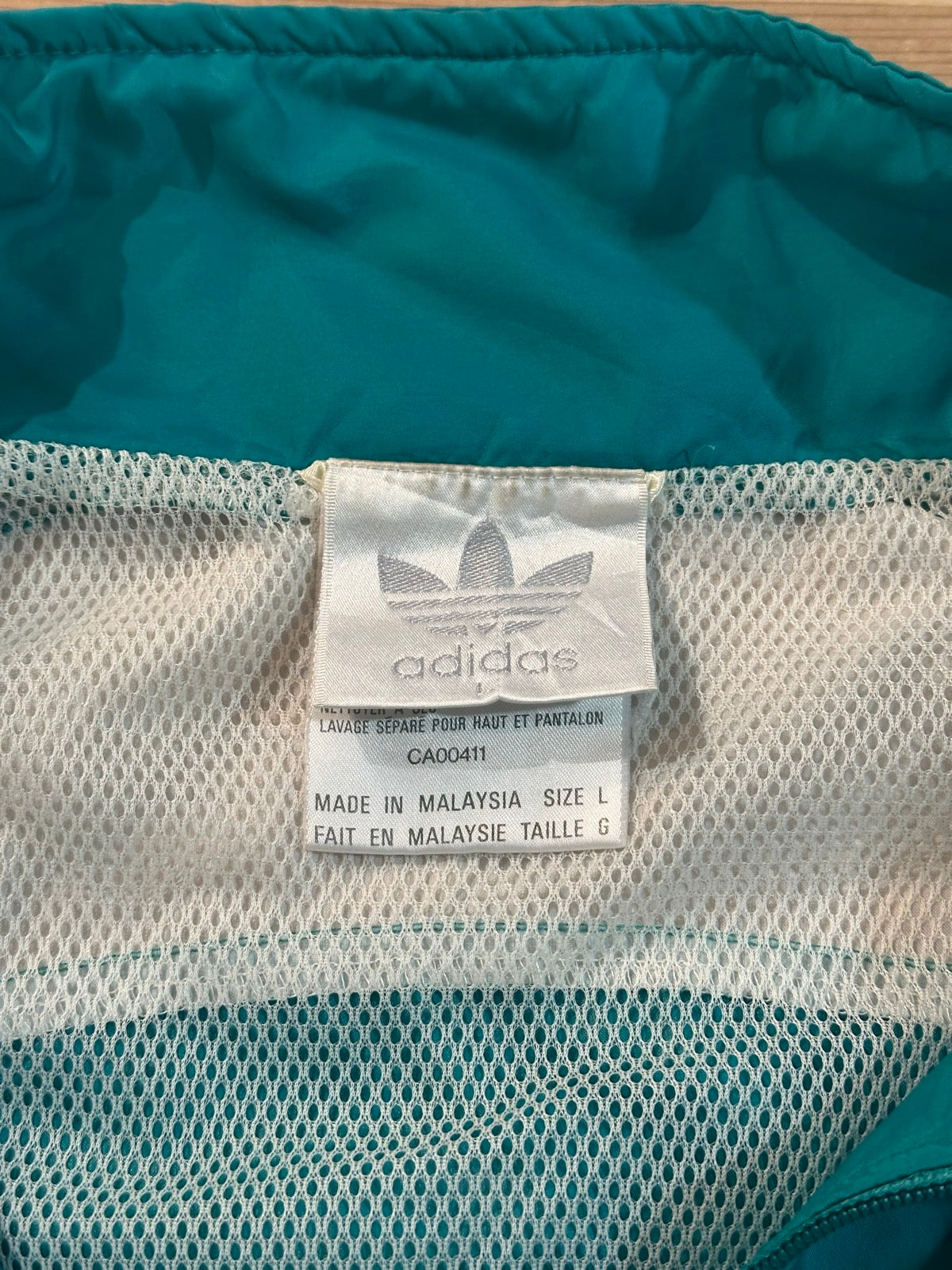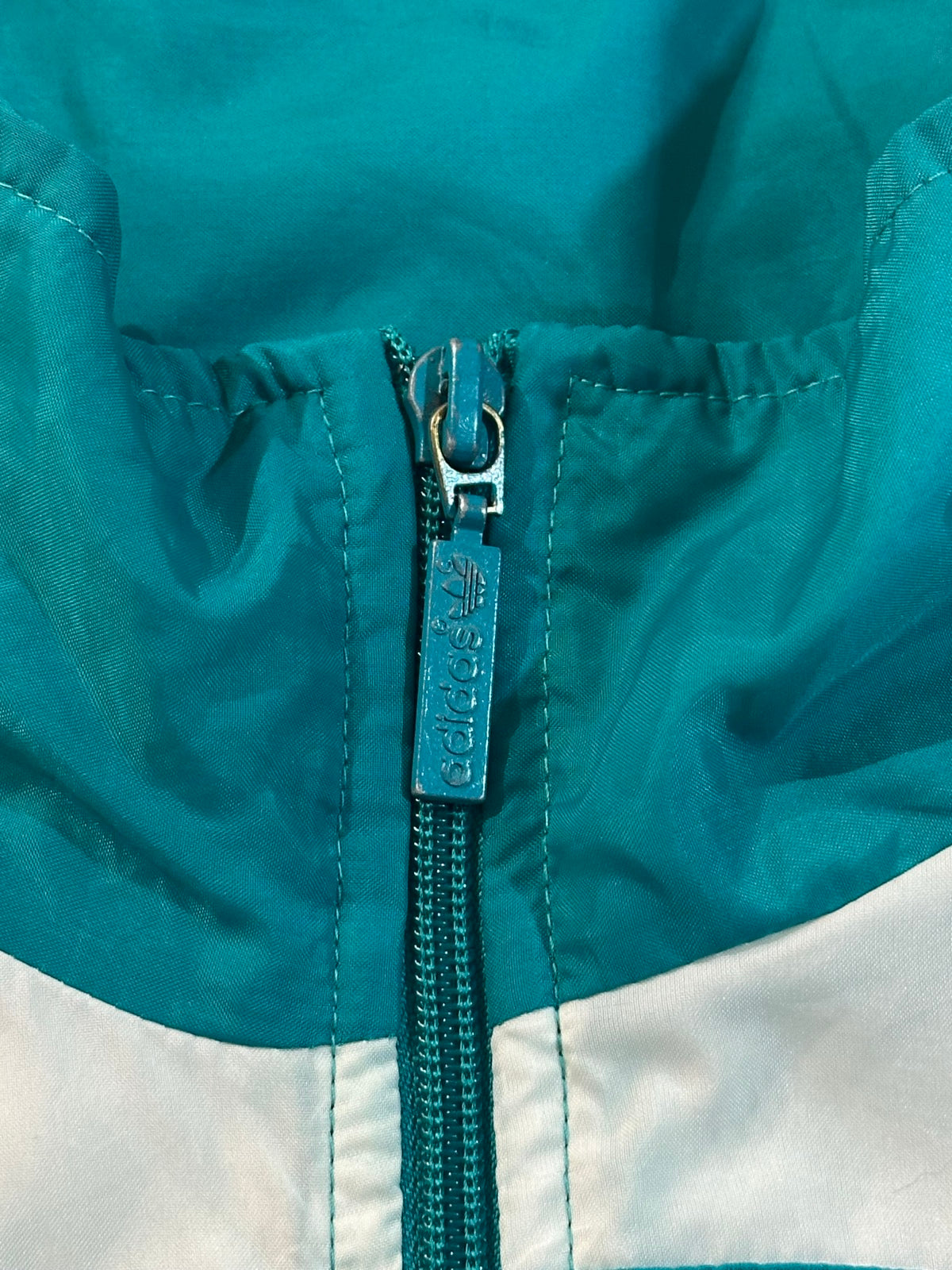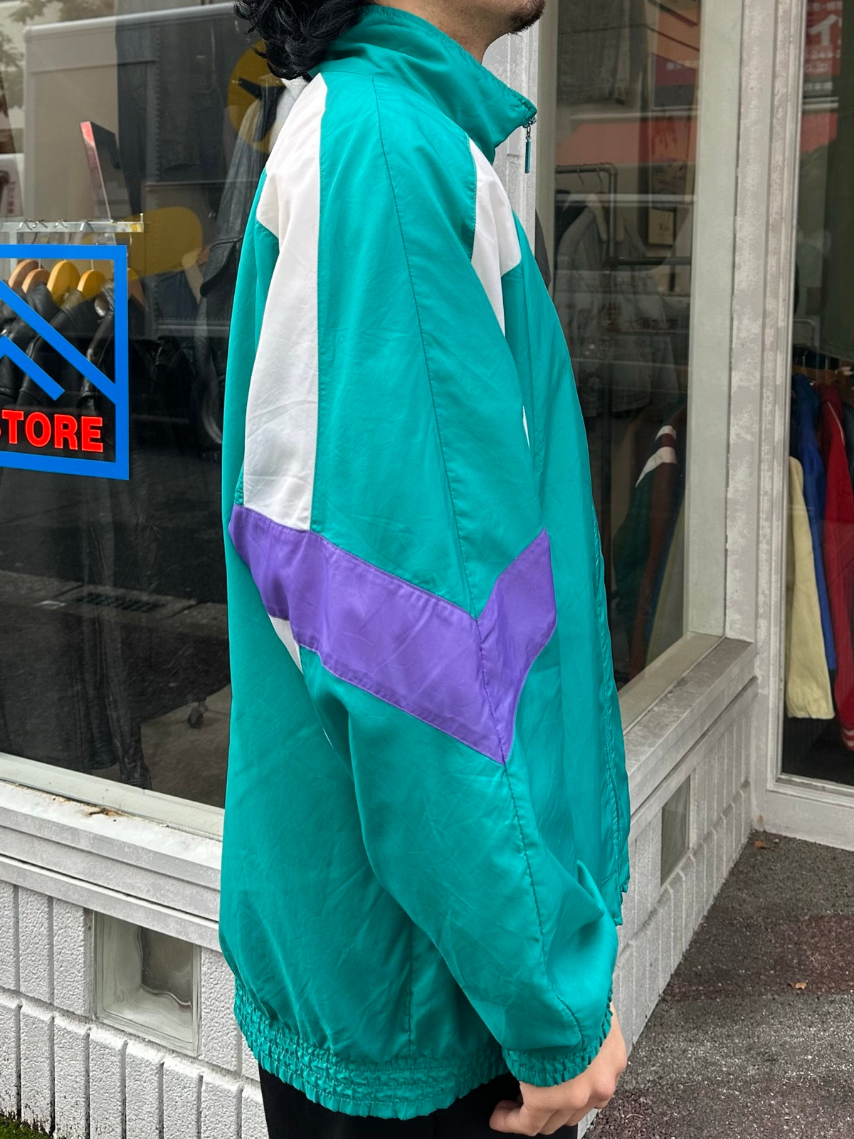 90年代らしい大胆な切り替えデザインが魅力のadidasナイロンジャケット。