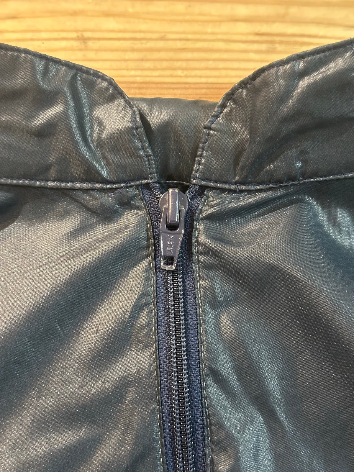 90年代らしい大胆な切り替えデザインが魅力のadidasナイロンジャケット。
