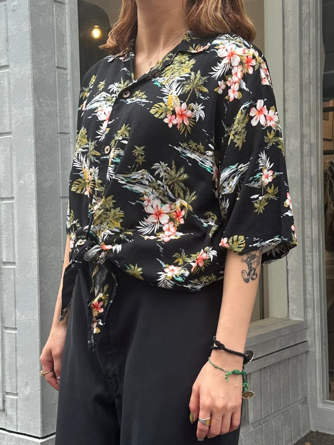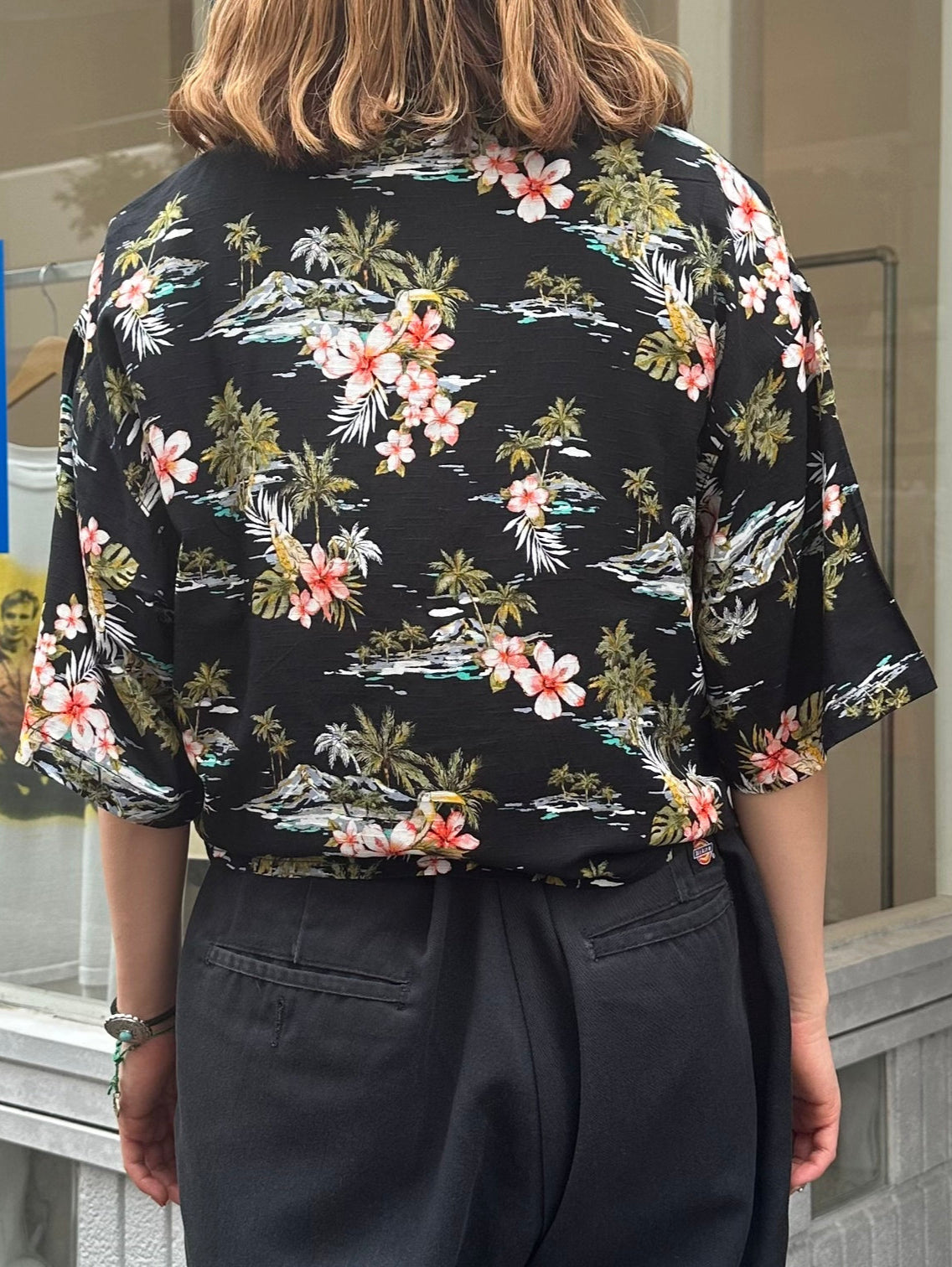 ハワイアンシャツの生地を使ったリメイクのシャツです。