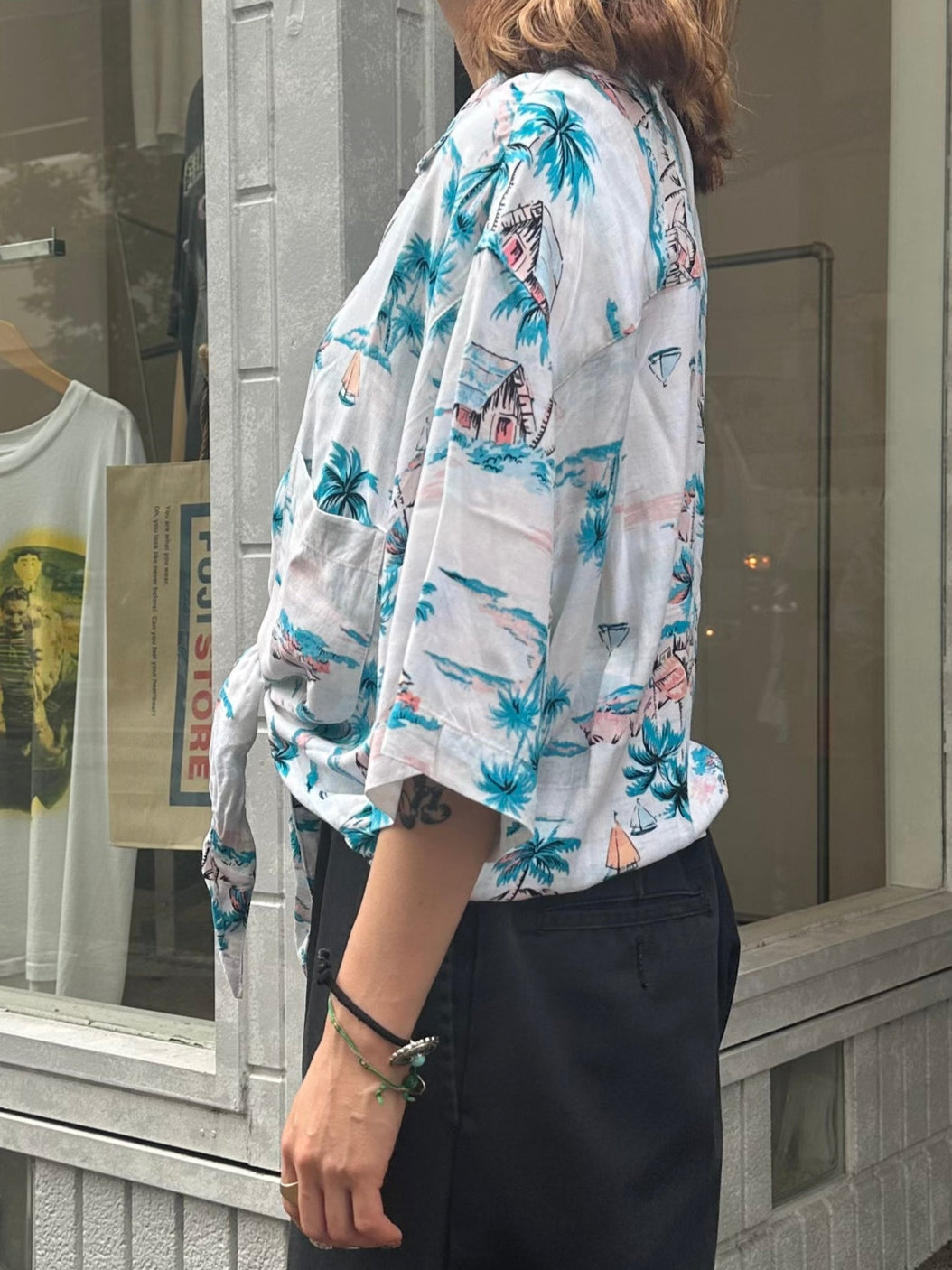 ハワイアンシャツの生地を使ったリメイクのシャツです。