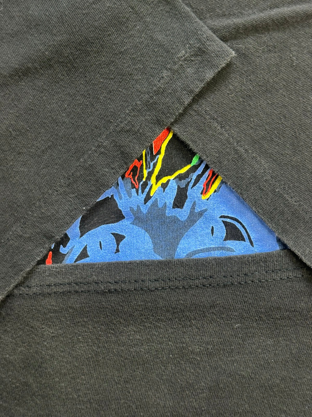 インパクトある一枚。ブラックボディにネオンカラーが映え、80sロックらしい派手さと