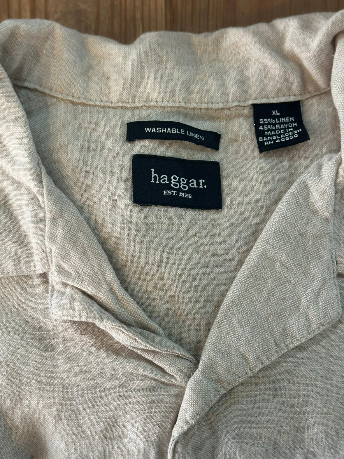 画像に写っているシャツは、Haggarのオープンカラーシャツ。