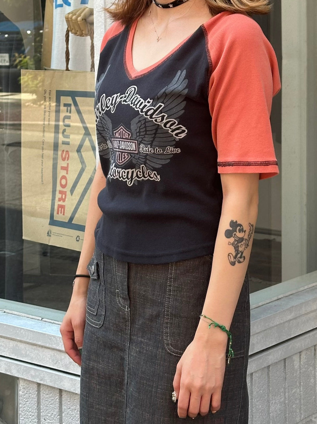 00's HARLEY-DAVIDSON 「Matarcyches」ラグランTシャツ
