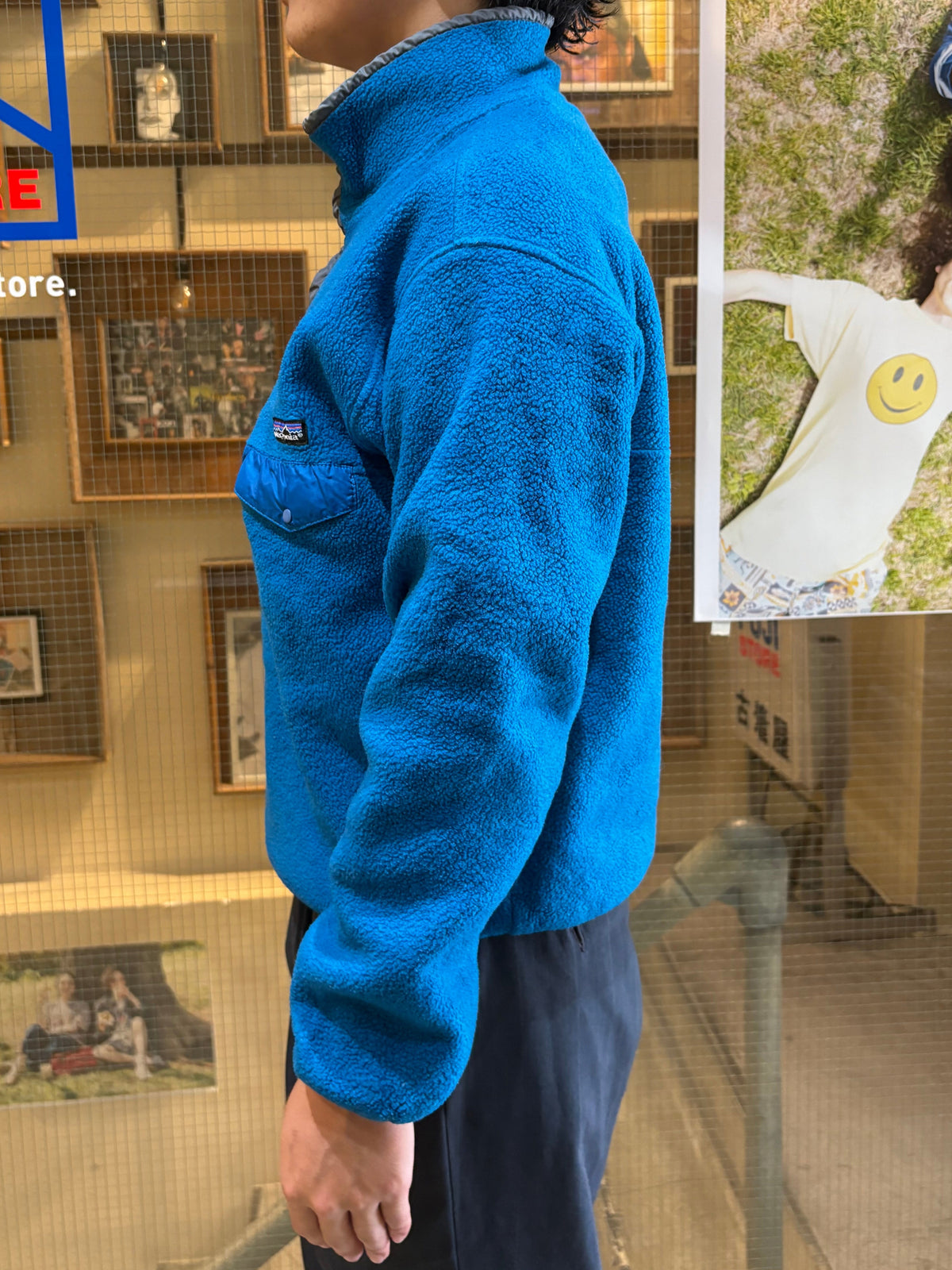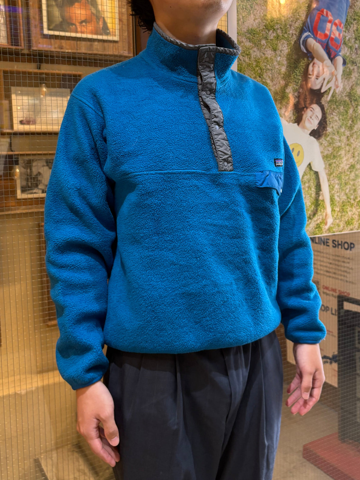1985年に登場した、パタゴニアを代表するロングセラーアイテムで、特徴的なスナップボタン付きのプルオーバーデザインと、保温性、速乾性に優れたシンチラフリース素材が魅力です。